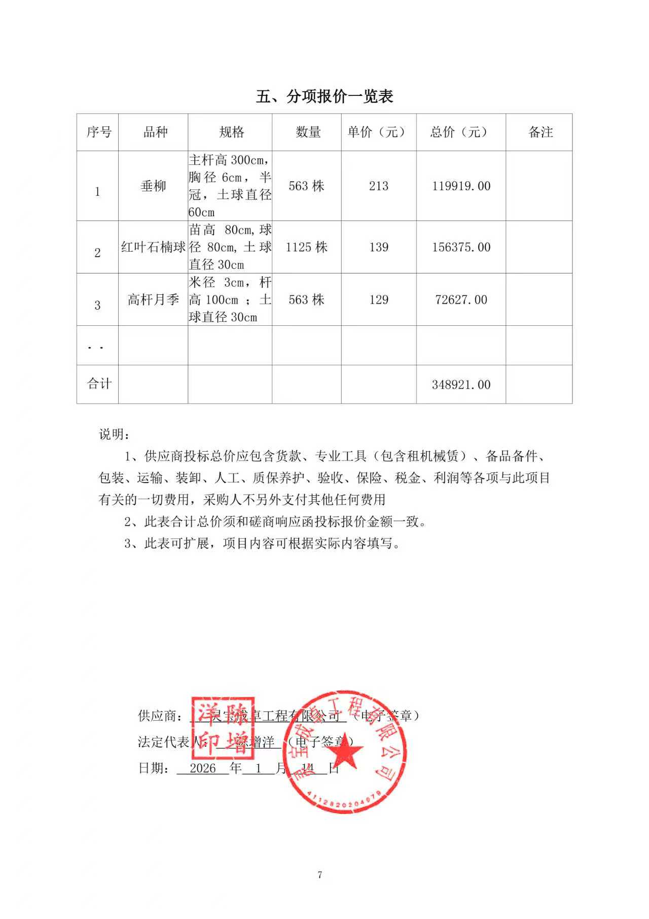 | *、采购项目名称:西闫乡沙河西岸道路两侧绿化项目 | |||||||||||||||||||||||||||||||