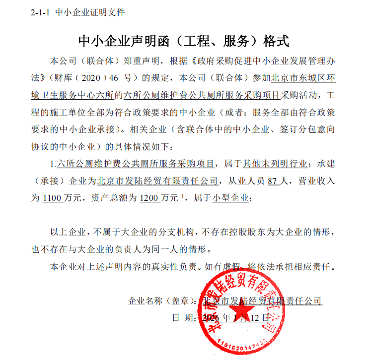 [东城区]六所公厕维护费公共厕所服务采购项目中标公告