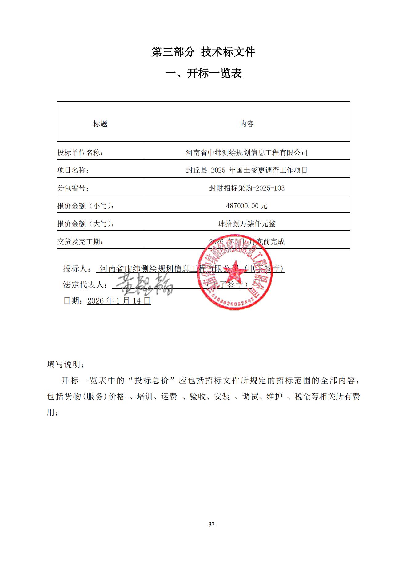 封丘县自然资源局封丘县2025年国土变更调查工作项目-结果公告