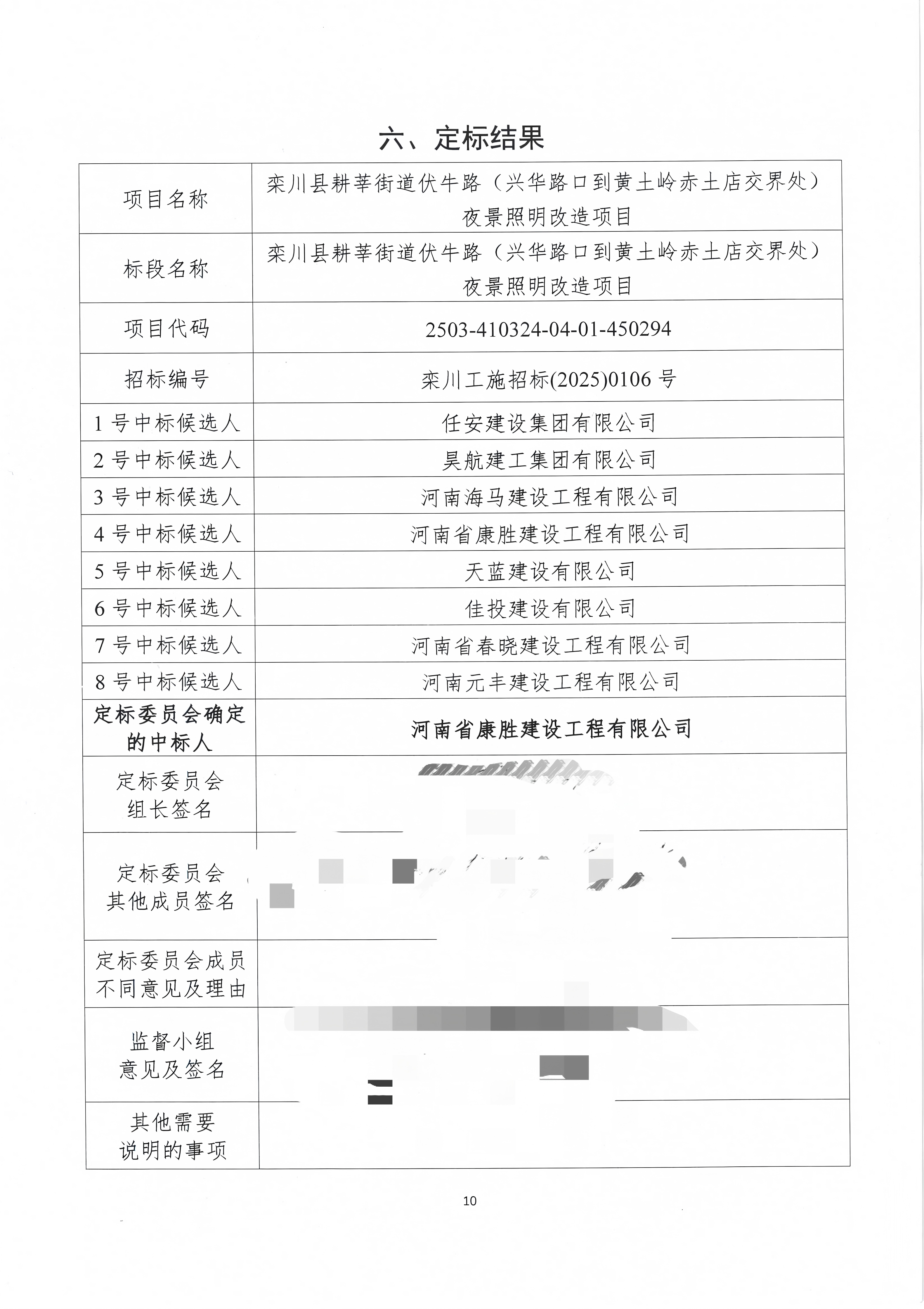 栾川县耕莘街道办事处栾川县耕莘街道伏牛路(兴华路口到黄土岭赤土店交界处)夜景照明改造项目*中标公告
