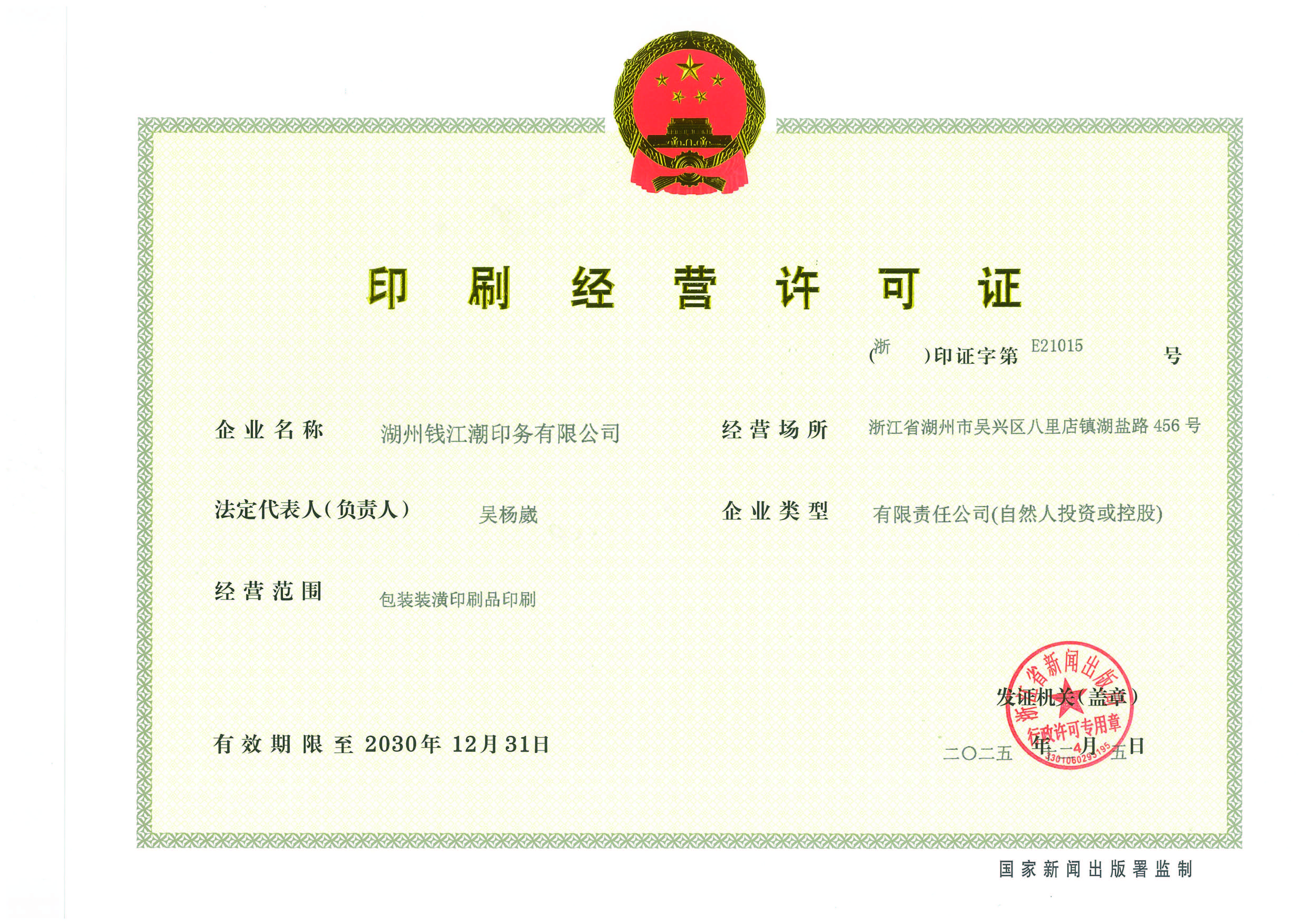 湖州钱江潮印务有限公司印刷服务(《印刷业管理条例》其他印刷品