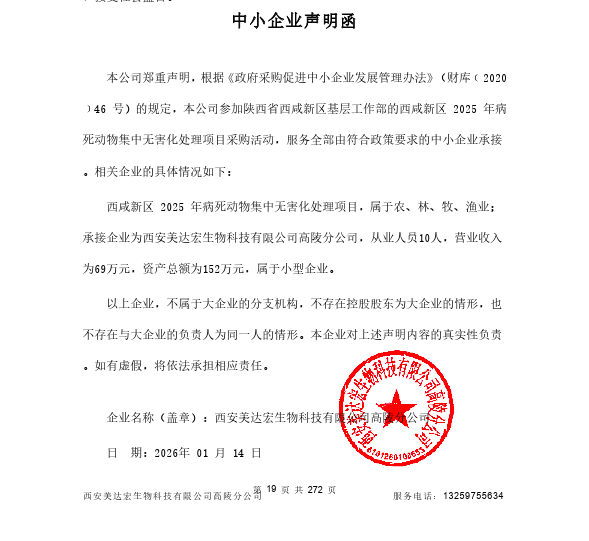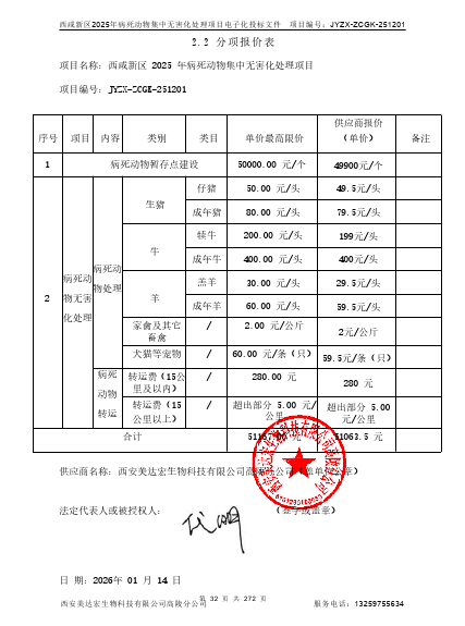 西咸新区2025年病死动物集中无害化处理项目中标结果公告