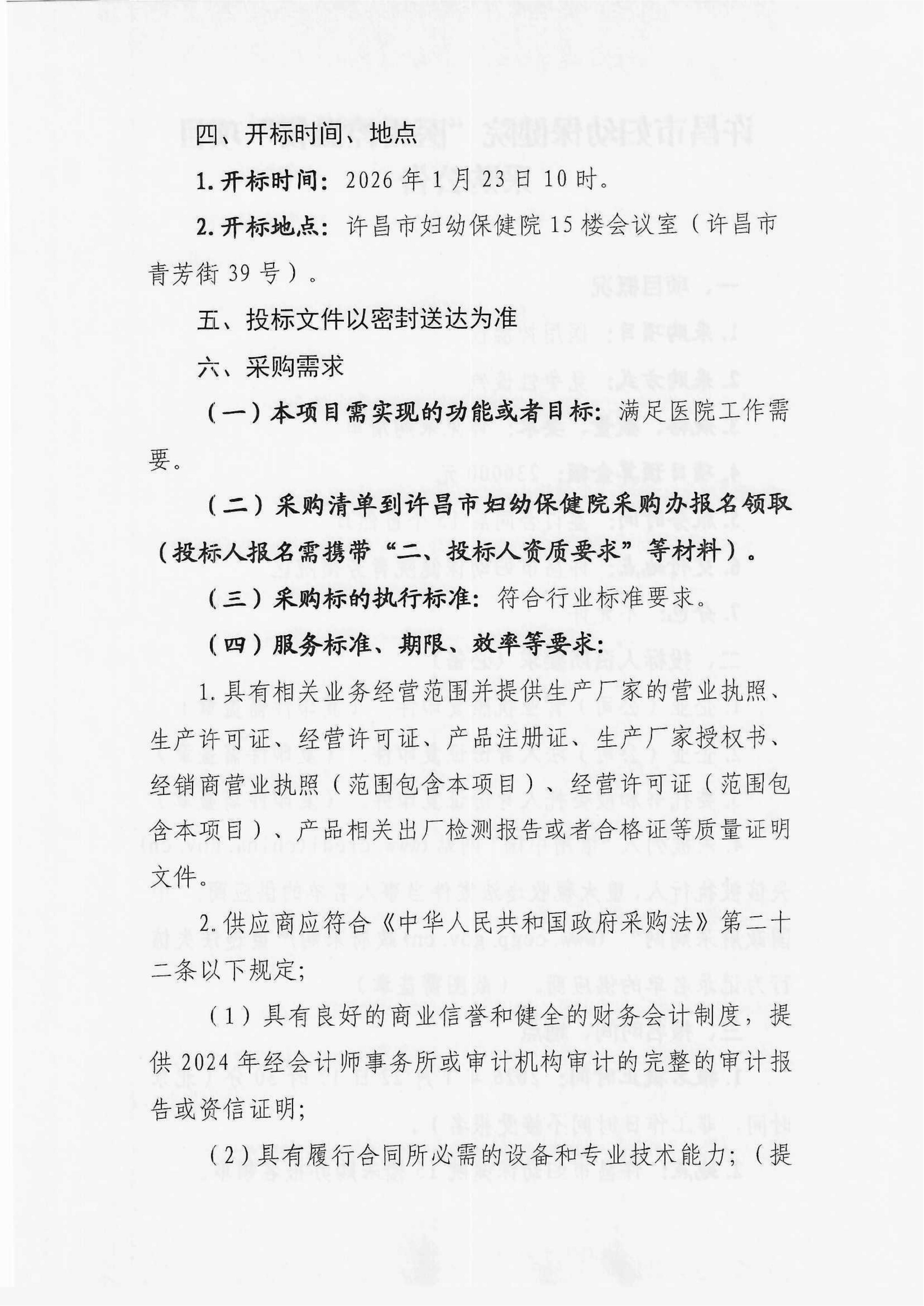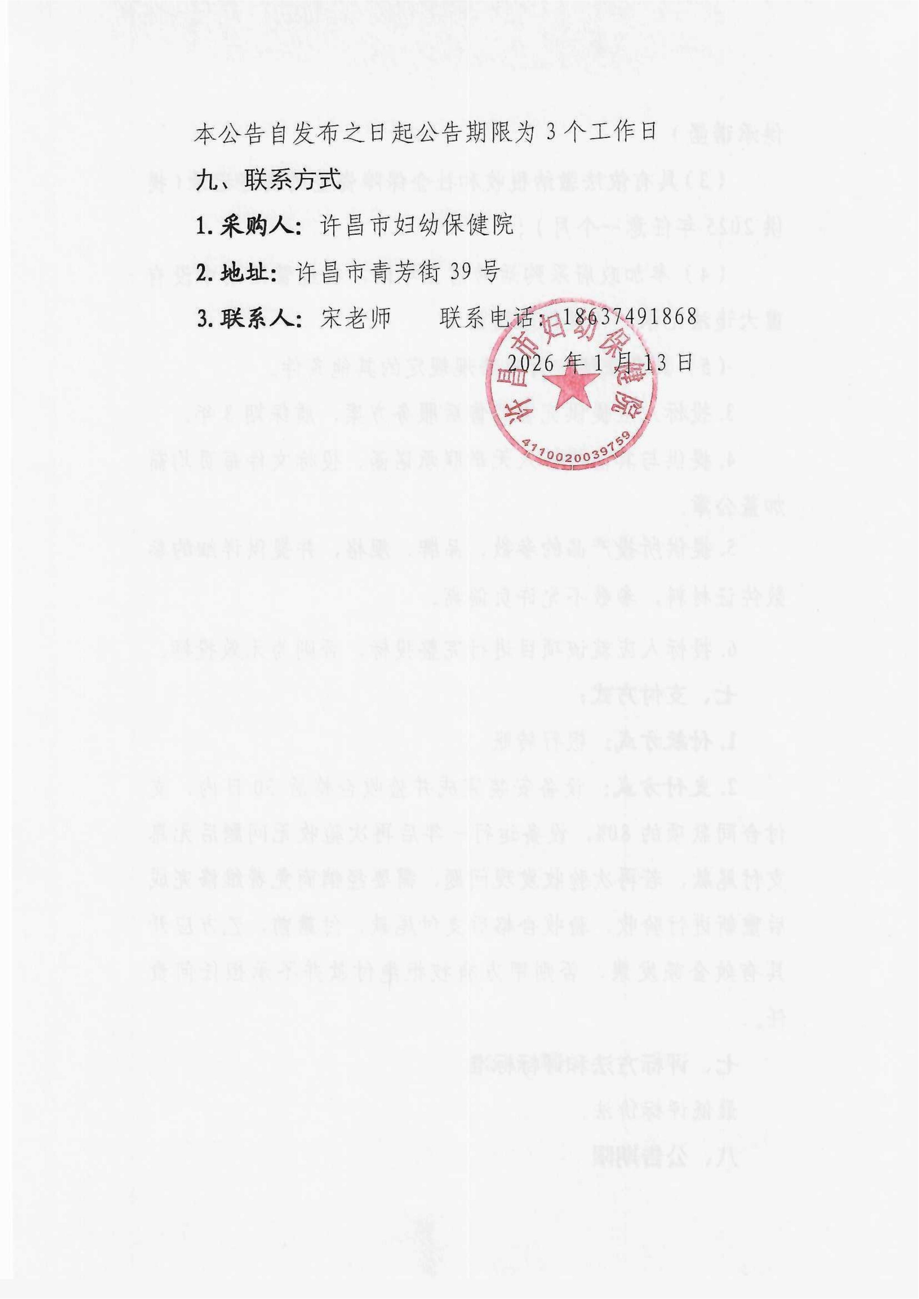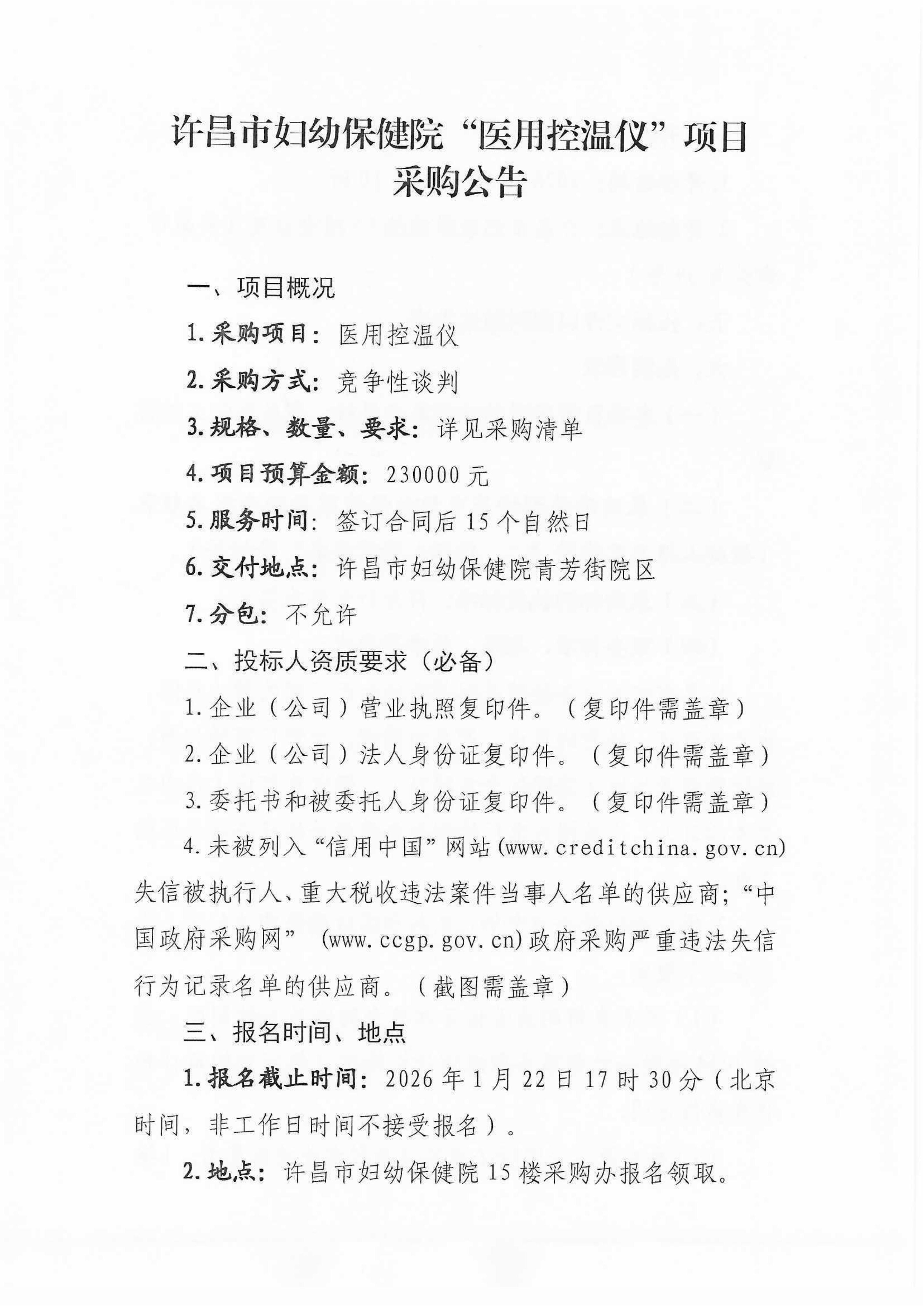 许昌市妇幼保健院“医用控温仪”项目采购公告