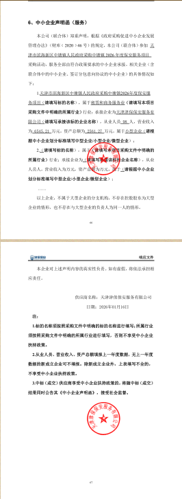 天津市滨海新区中塘镇人民政府采购中塘镇2026年度保安服务项目(项目...
