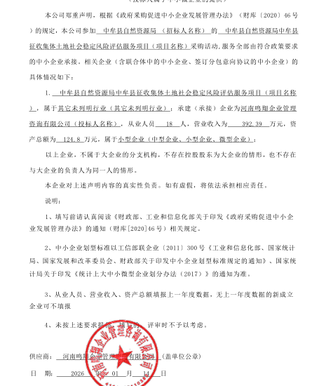 中牟县自然资源局中牟县征收集体土地社会稳定风险评估服务项目*中标公告
