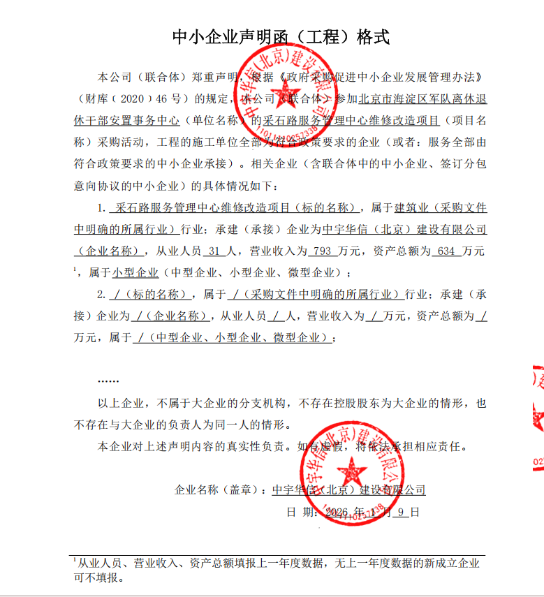 中标成交供应商名称:中宇华信(北京)建设有限公司
