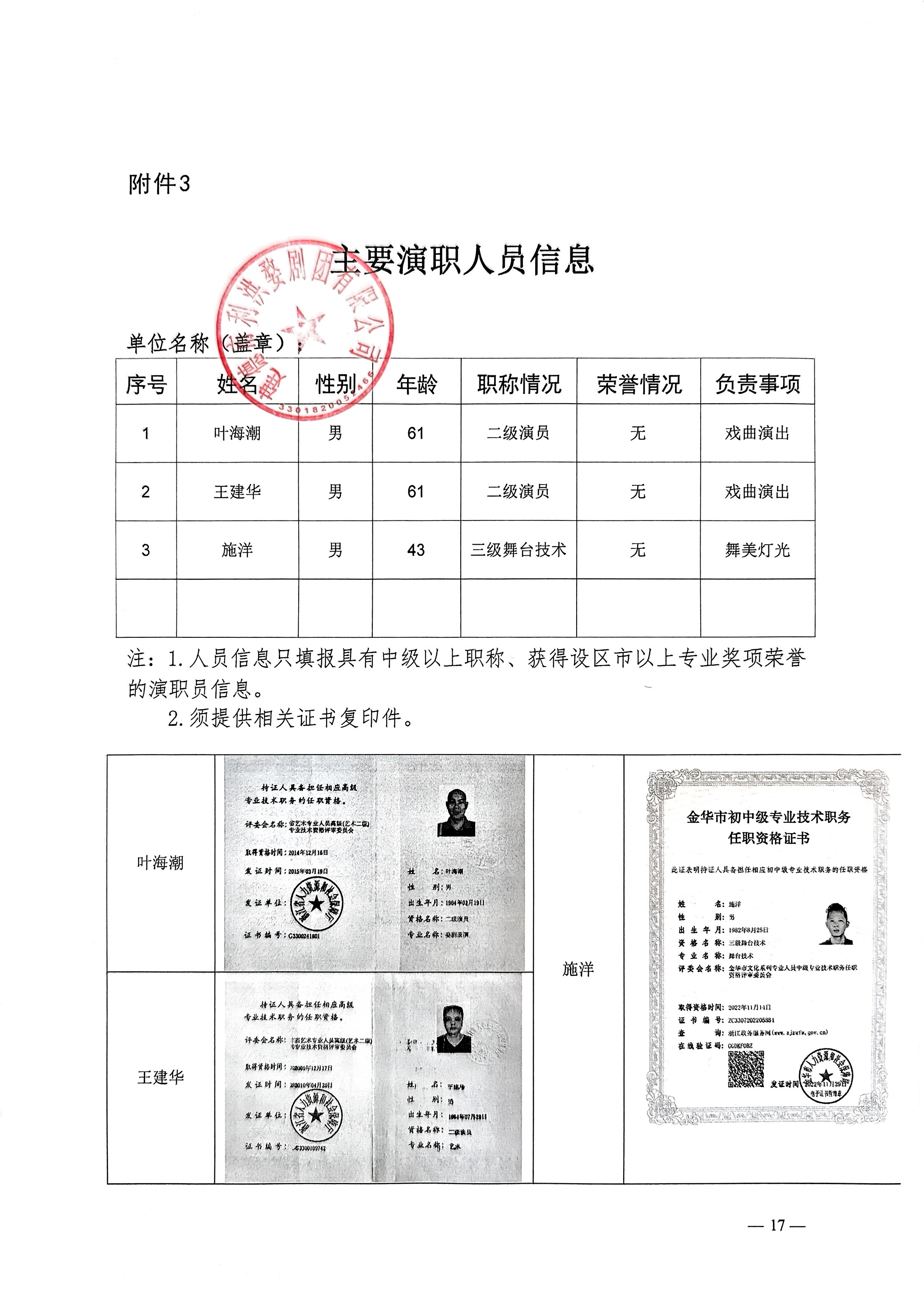 演职人员信息(按《公告》附件*格式填写):演职人员信息.***