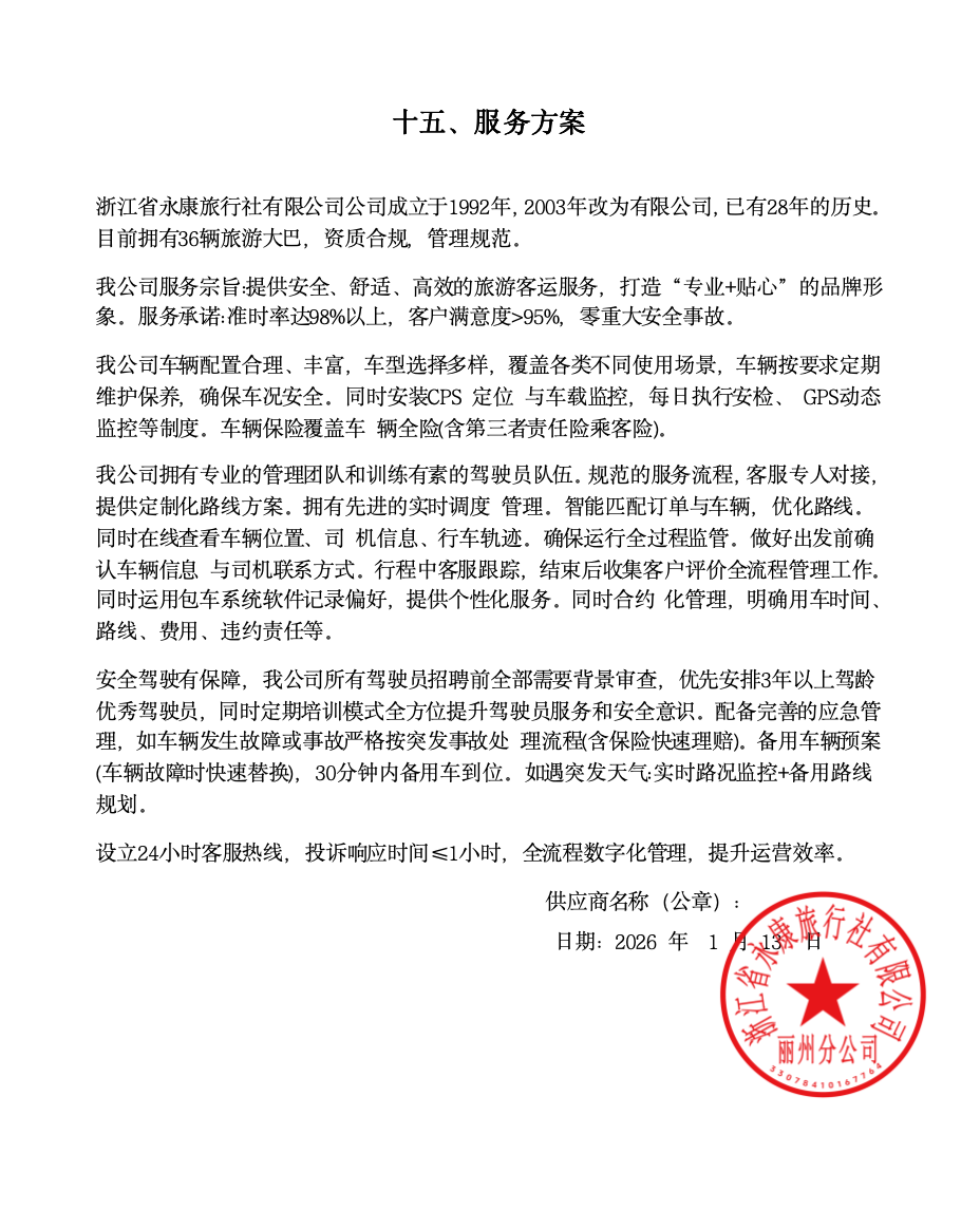 浙江省永康旅行社有限公司丽州分公司公车租赁服务[*座(不含)以上包车,含驾驶服务]