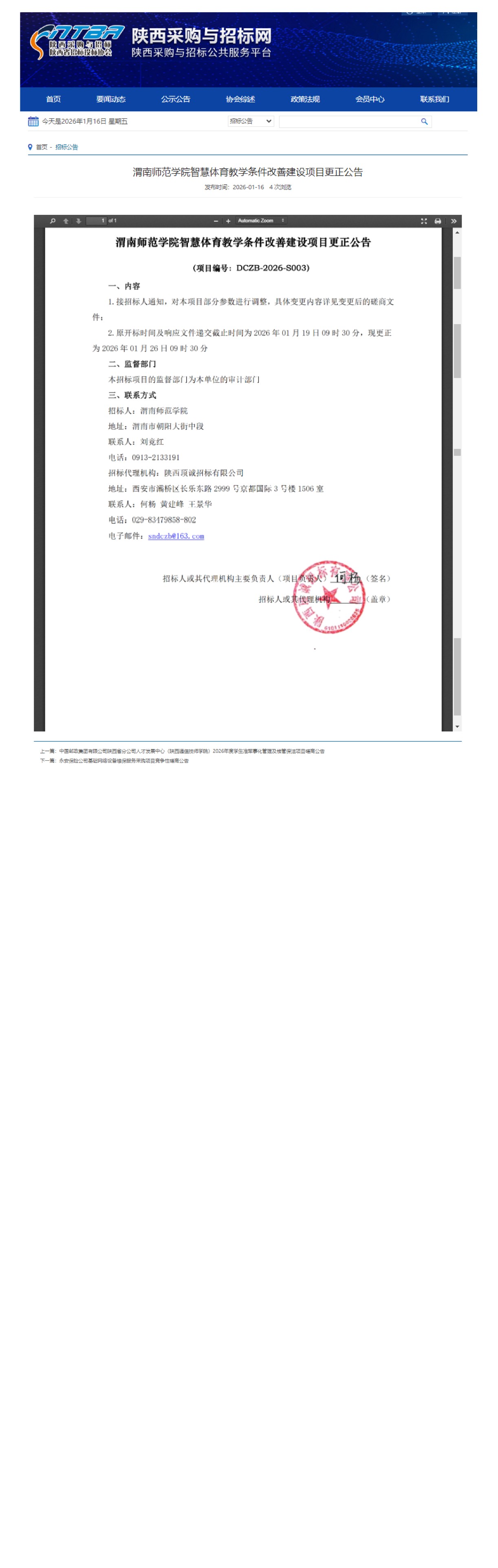 渭南师范学院智慧体育教学条件改善建设项目更正公告