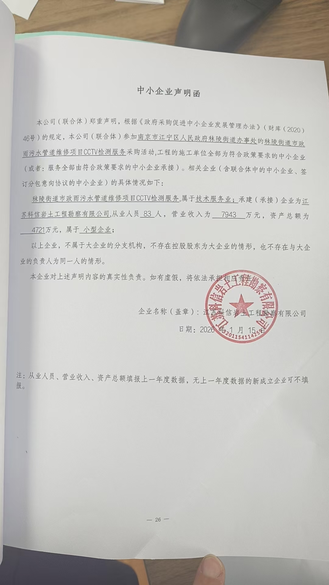 名 称:秣陵街道市政雨污水管道维修项目****检测服务