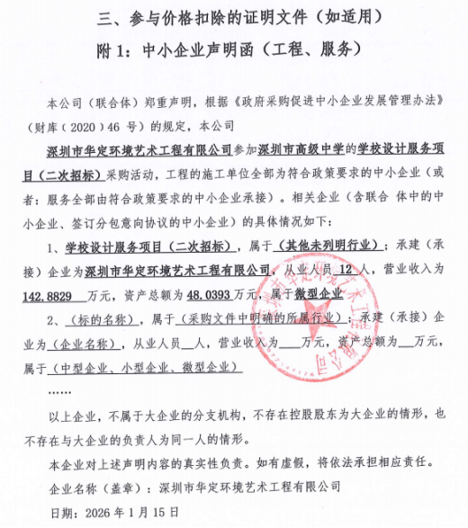 *.供应商名称:深圳市华定环境艺术工程有限公司