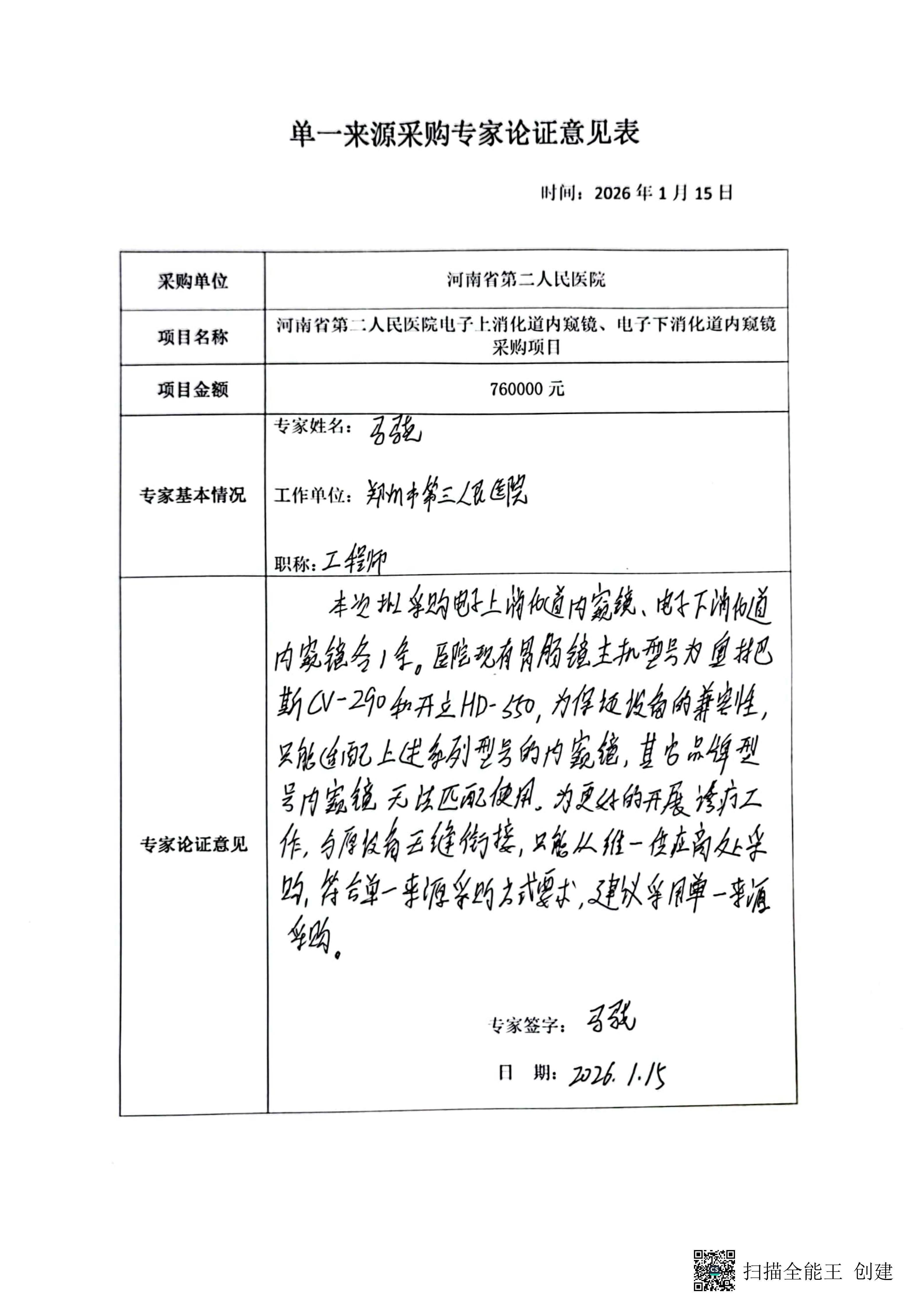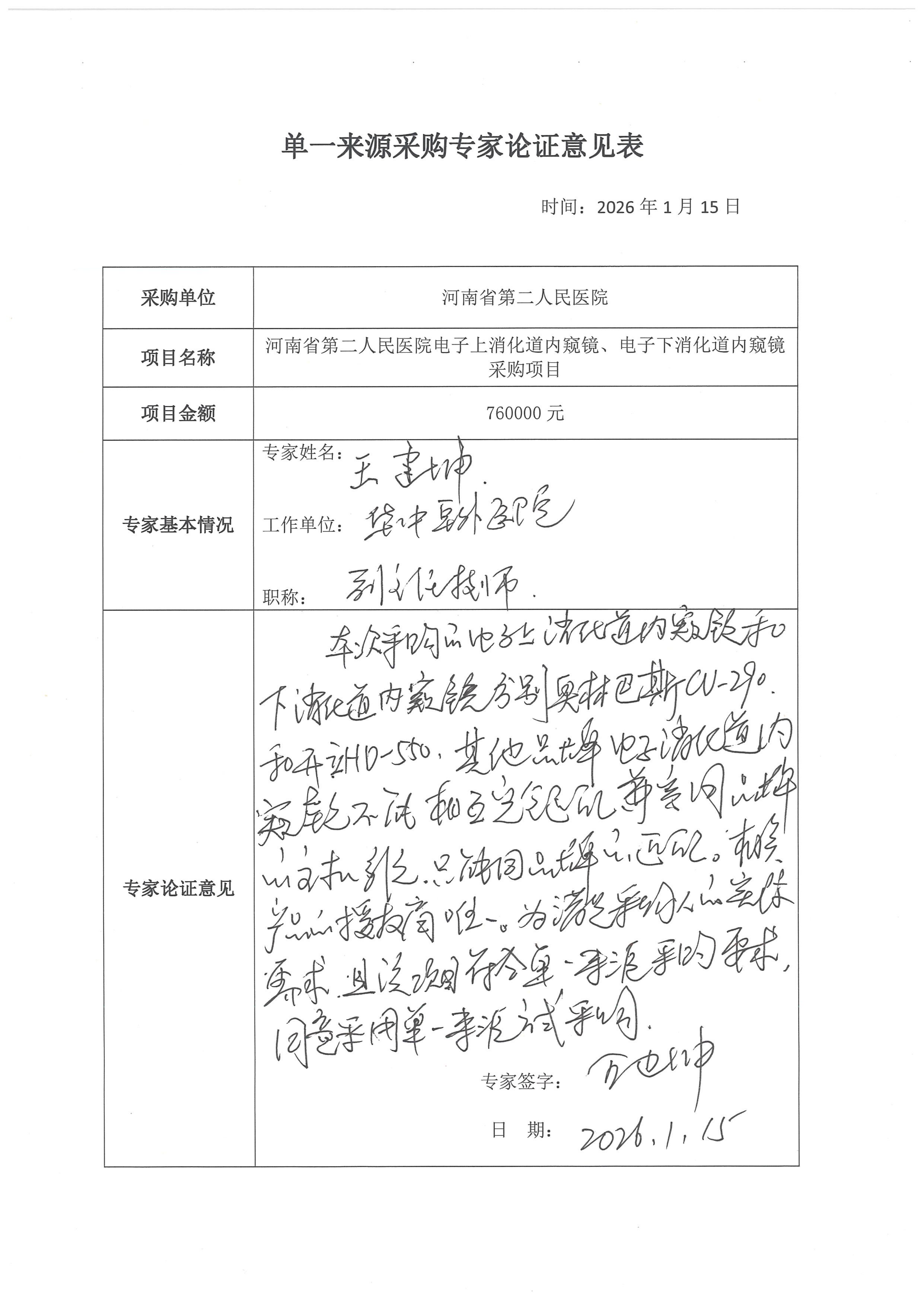 | 河南省第二人民医院是一所综合性医院,担负着医院周边人民群众的医疗保健任务,为了更好地服务社会大众,河南省第二人民医院根据科室工作需要,对科室的电子上消化道内窥镜、电子下消化道内窥镜,各增加*条软镜,医院现在使用的胃肠镜主机型号为:奥林巴斯******、开立******。根据主机型号,只能适配上述系列型号的内窥镜,其它品牌型号的内窥镜,无法适配到医院现有内窥镜主机上使用,根据项目实际情况,为了保证服务配套要求,且该项目只能从唯一供应商处进行采购,符合单一来源采购方式要求。拟采用单一来源采购方式采购。 | ||||||||||||||||