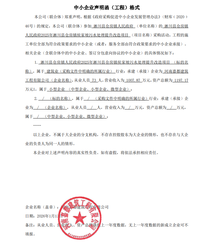 淅川县仓房镇人民政府2025年淅川县仓房镇侯家坡污水处理提升改造项目-成交公告