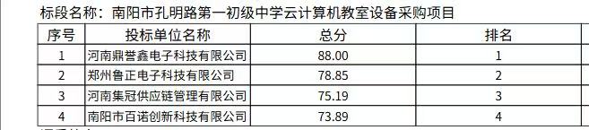 南阳市孔明路第一初级中学云计算机教室设备采购项目-成交公告