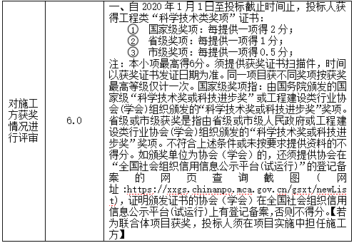 招标内容 | 修改内容 一、原招标文件:第三章、评标办法评标办法前附表中的 ![]() 现改为: ![]() 二、删除原招标文件:第三章、评标办法评标办法前附表中的 ![]() 三、原招标文件:第三章、评标办法评标办法前附表中的 ![]() 现改为: ![]() 注:招标文件如涉及上述内容的亦作相应修改。如原招标文件与本文有不符之处,以本文为准。招标文件未变更部分,仍按原招标文件执行。 | |||