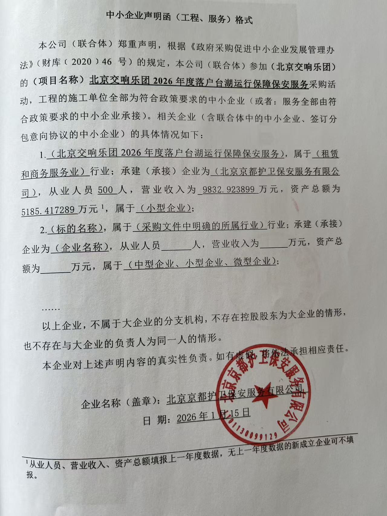 [公开]北京交响乐团2026年度落户台湖运行保障保安服务中标公告