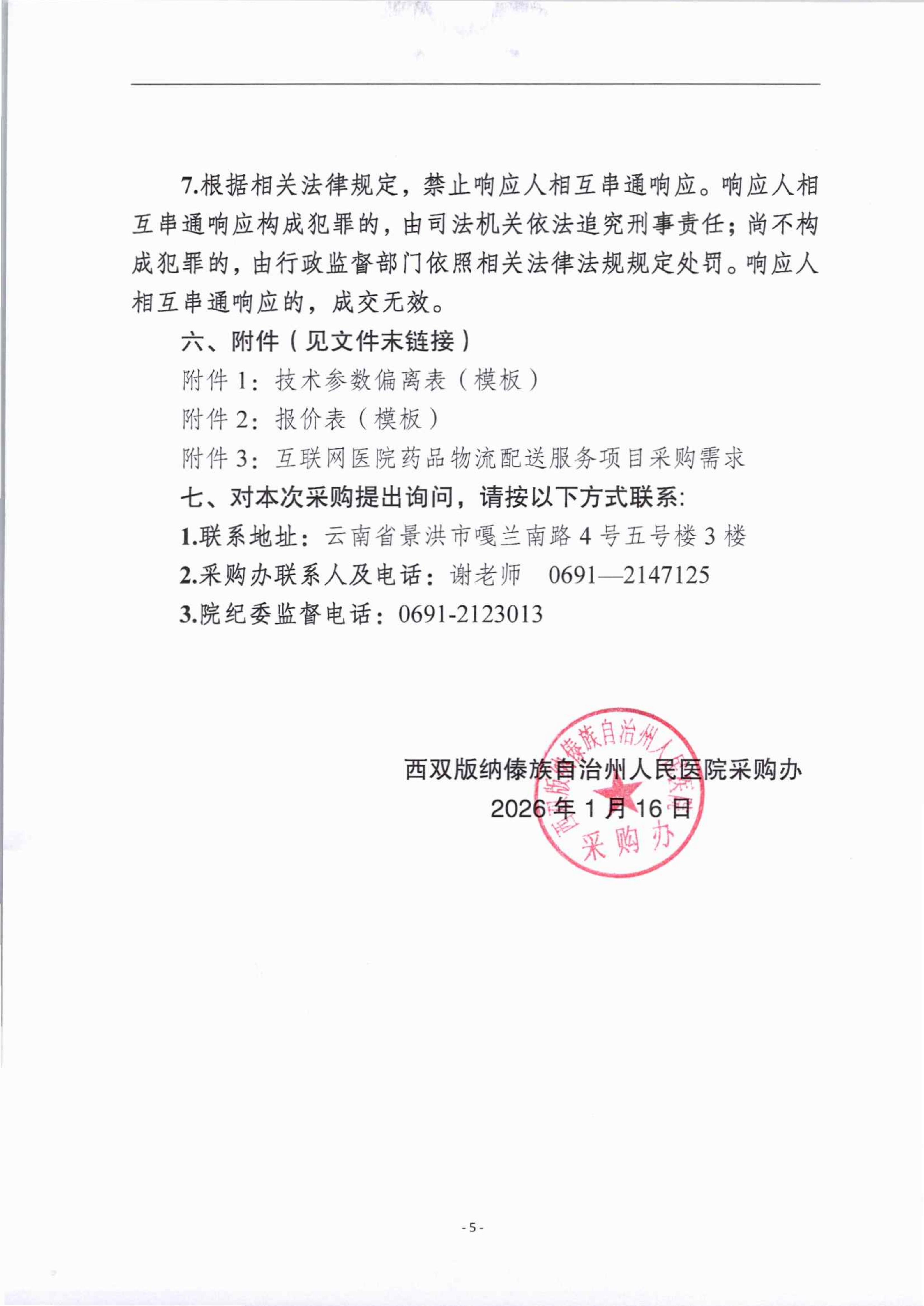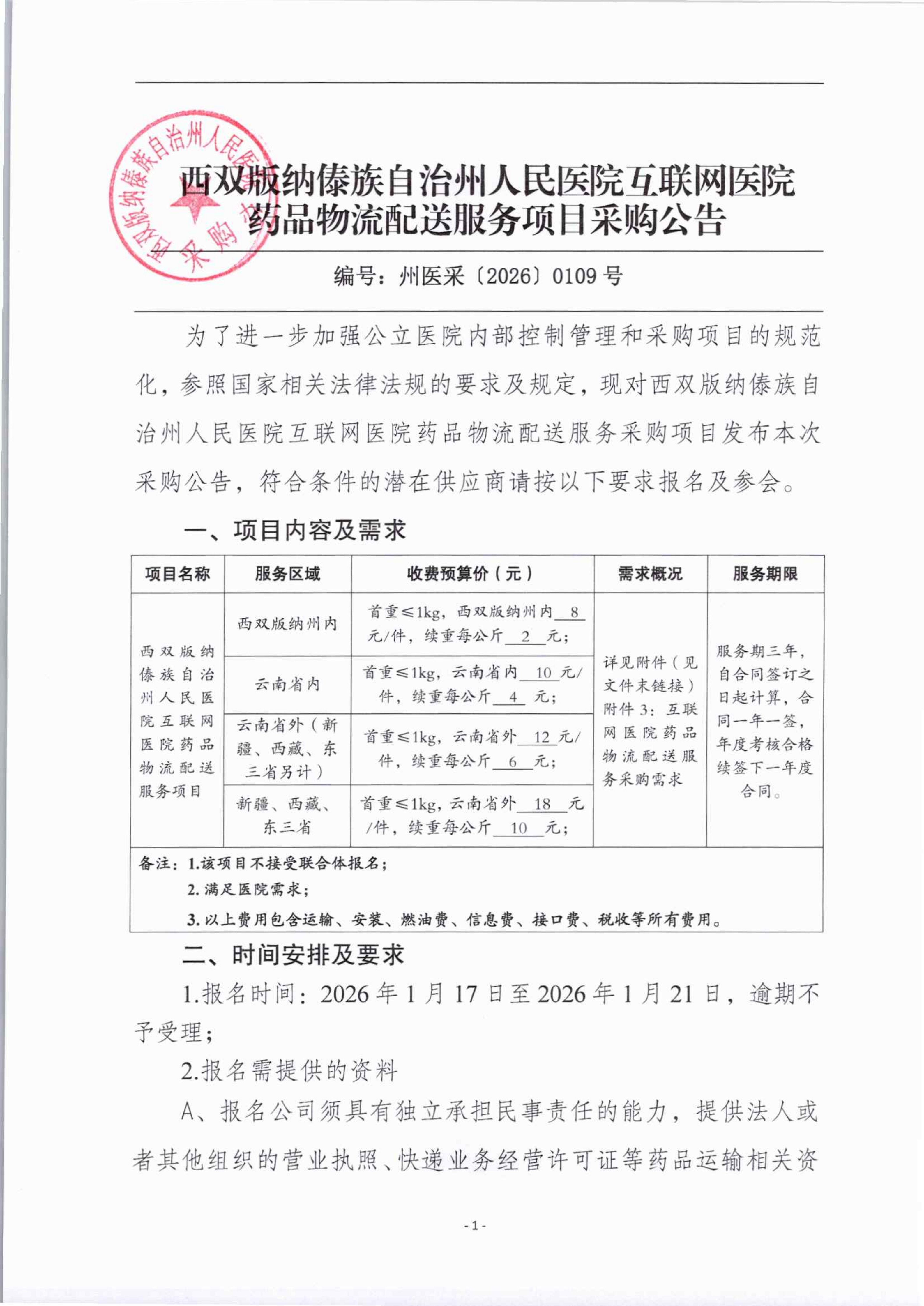 西双版纳傣族自治州人民医院互联网医院药品物流配送服务项目采购公告