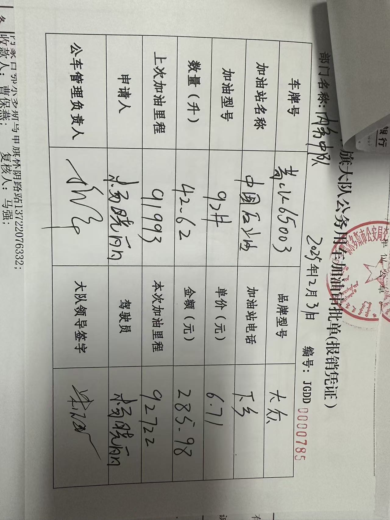 一、合同编号:鄂财购备字(电子)[****]*****号二、合同名称:乌审旗交管大队车辆燃料费三、项目编号:鄂财购备字(电子)[****]*****号四、项目名称:乌审旗交管大队车辆燃料费五、合同主体采购人(甲方):鄂尔多斯市公安局交通管理支队乌审旗大队 地址:内蒙古乌审旗嘎鲁图镇 联系方式:*********** 供应商(乙方):中国石油天然气股份有限公司内蒙古销售分公司 地址:内蒙古自治区呼和浩特市新城区成吉思汗大街 联系方式:************ 六、合同主要信息主要标的: