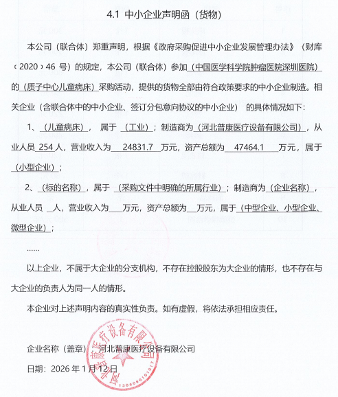 *.供应商名称:河北普康医疗设备有限公司