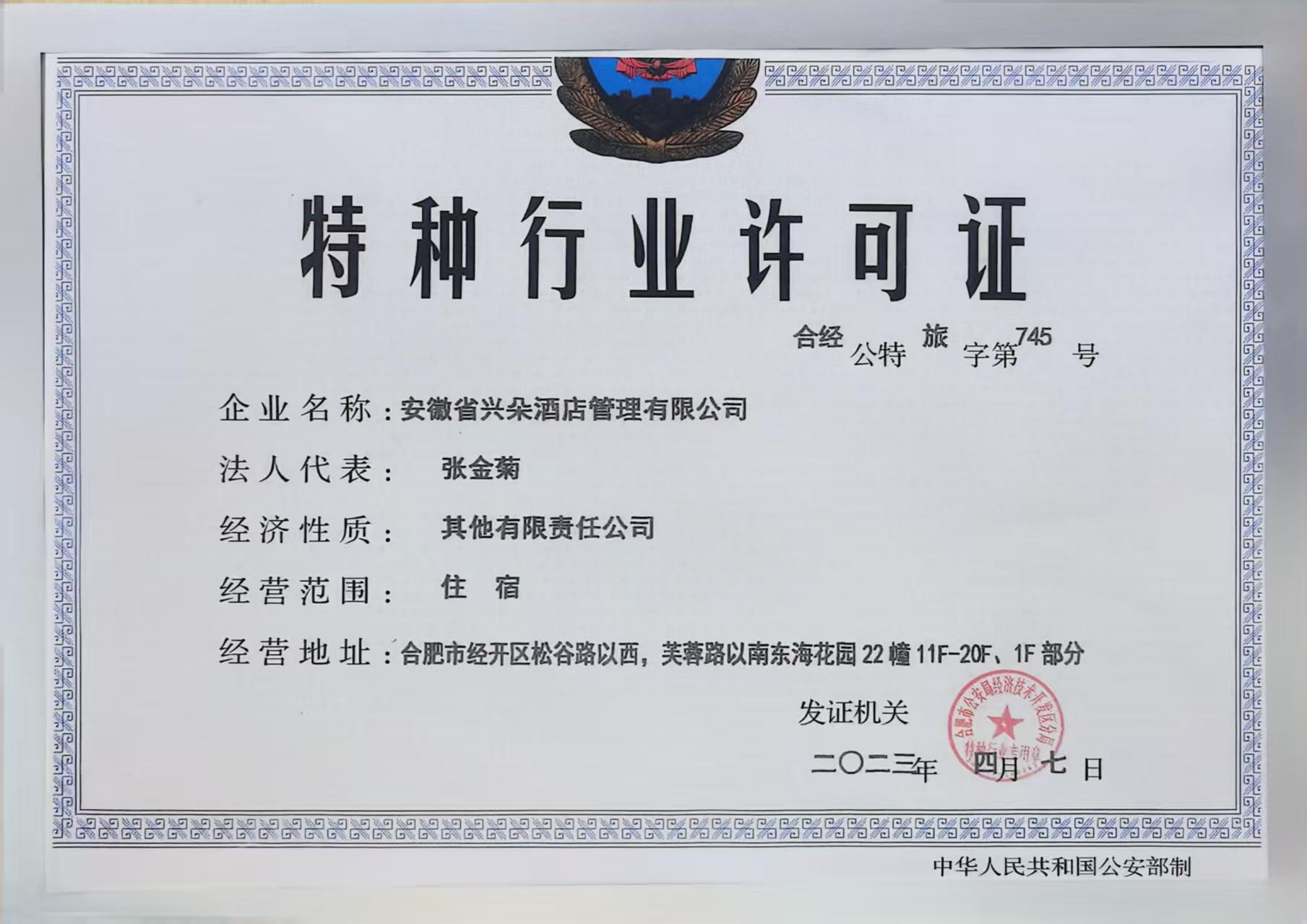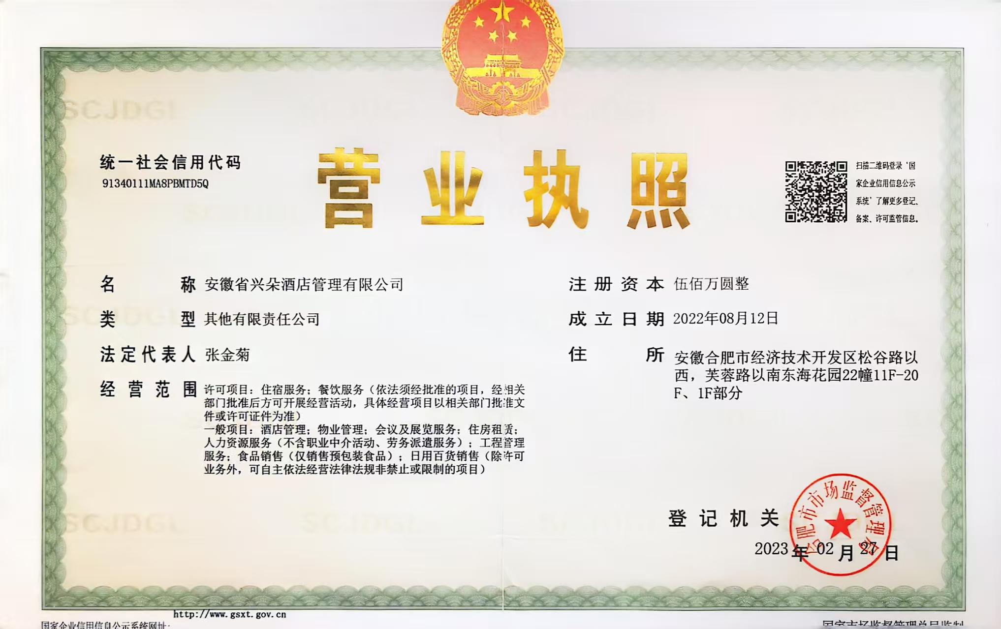 供应商名称:安徽省兴朵酒店管理有限公司