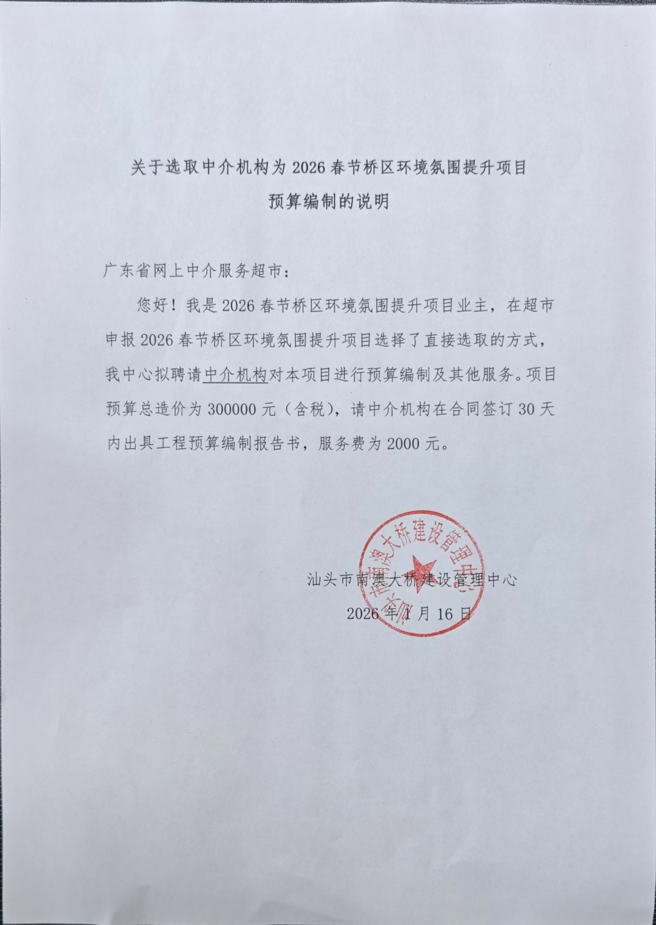 关于为【****年春节桥区环境氛围提升项目】公开选取【工程造价咨询】机构的公告