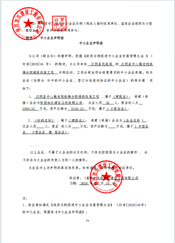 汉阴县民政局汉阴县中心敬老院铁佛分院维修改造工程中标(成交)结果公告