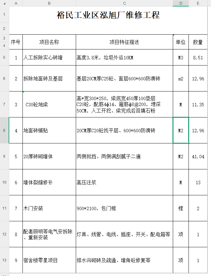 东莞市塘厦镇裕民工业区泓旭厂维修工程预算编制