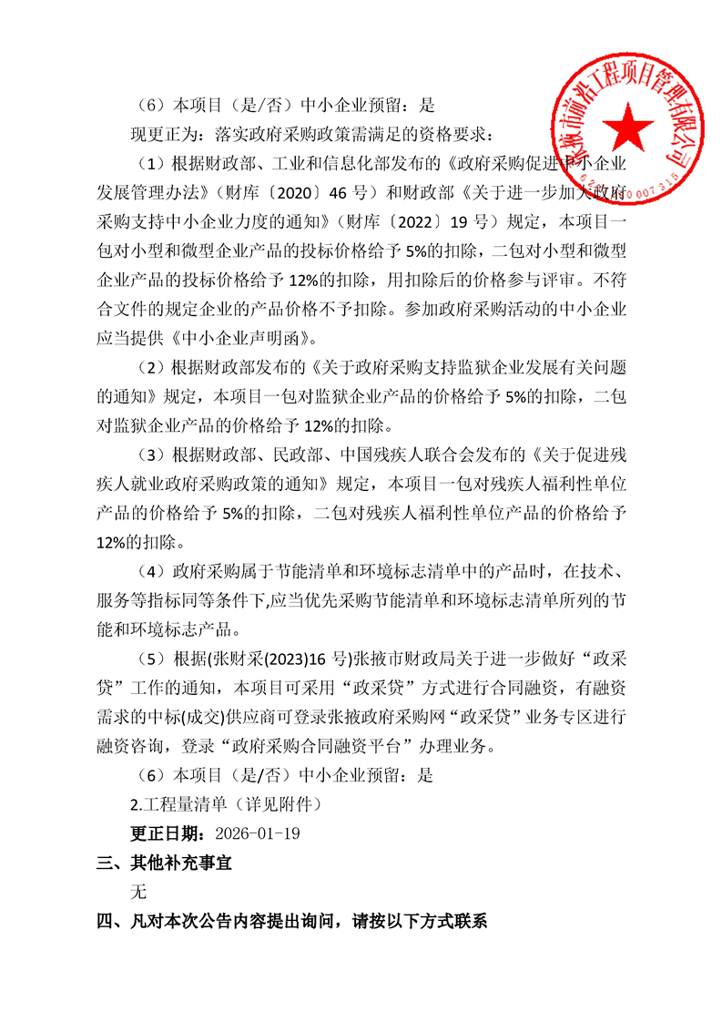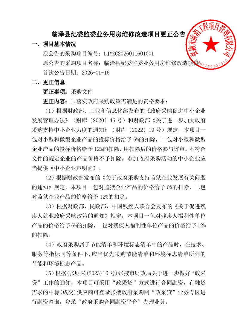 临泽县纪委监委业务用房维修改造项目更正公告更正事项