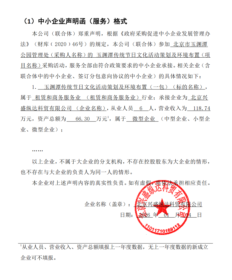 标的名称:玉渊潭传统节日环境装饰布置(一包);