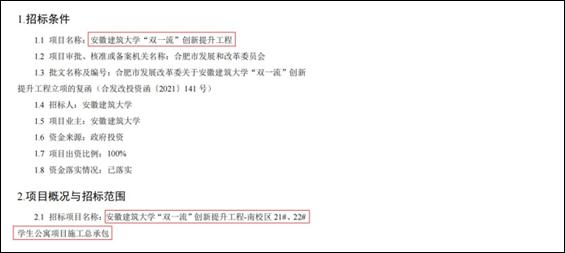 安徽建筑大学“双一流”创新提升工程*南校区**#、**#学生公寓项目施工总承包招标答疑澄清(一)