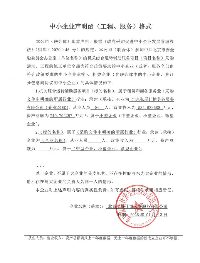 中标成交供应商名称:北京弘展仕博劳务服务有限公司