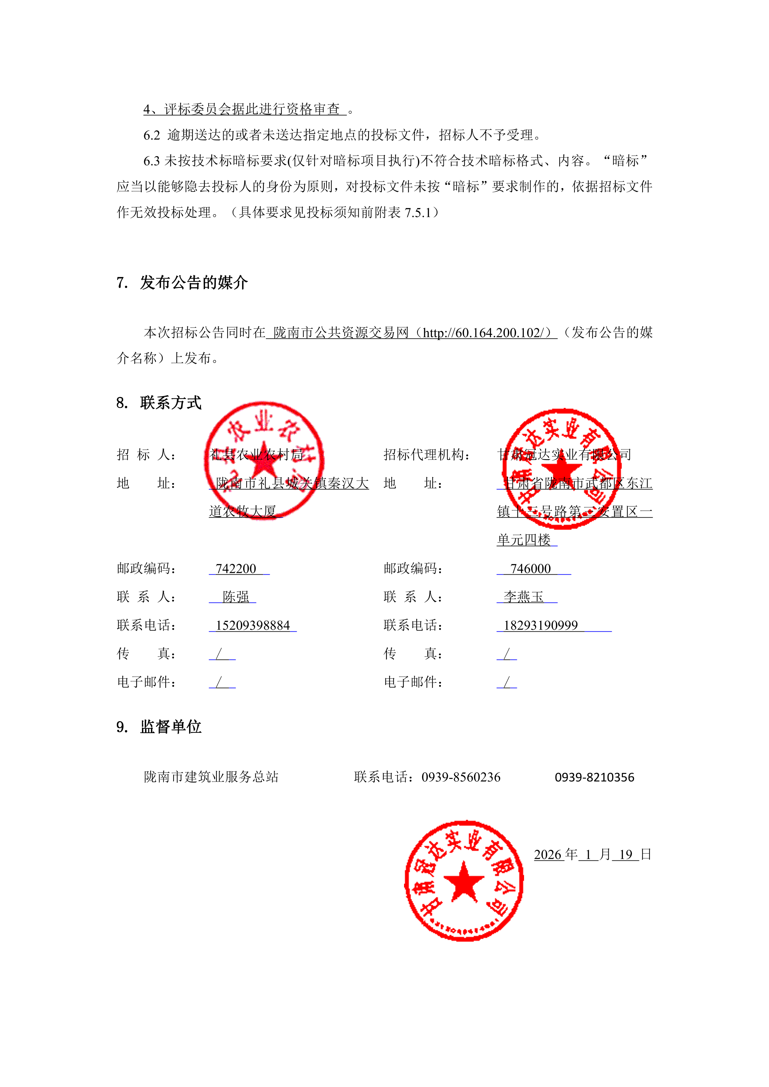 礼县农产品保鲜仓储园区建设项目监理(二次发布)招标公告
