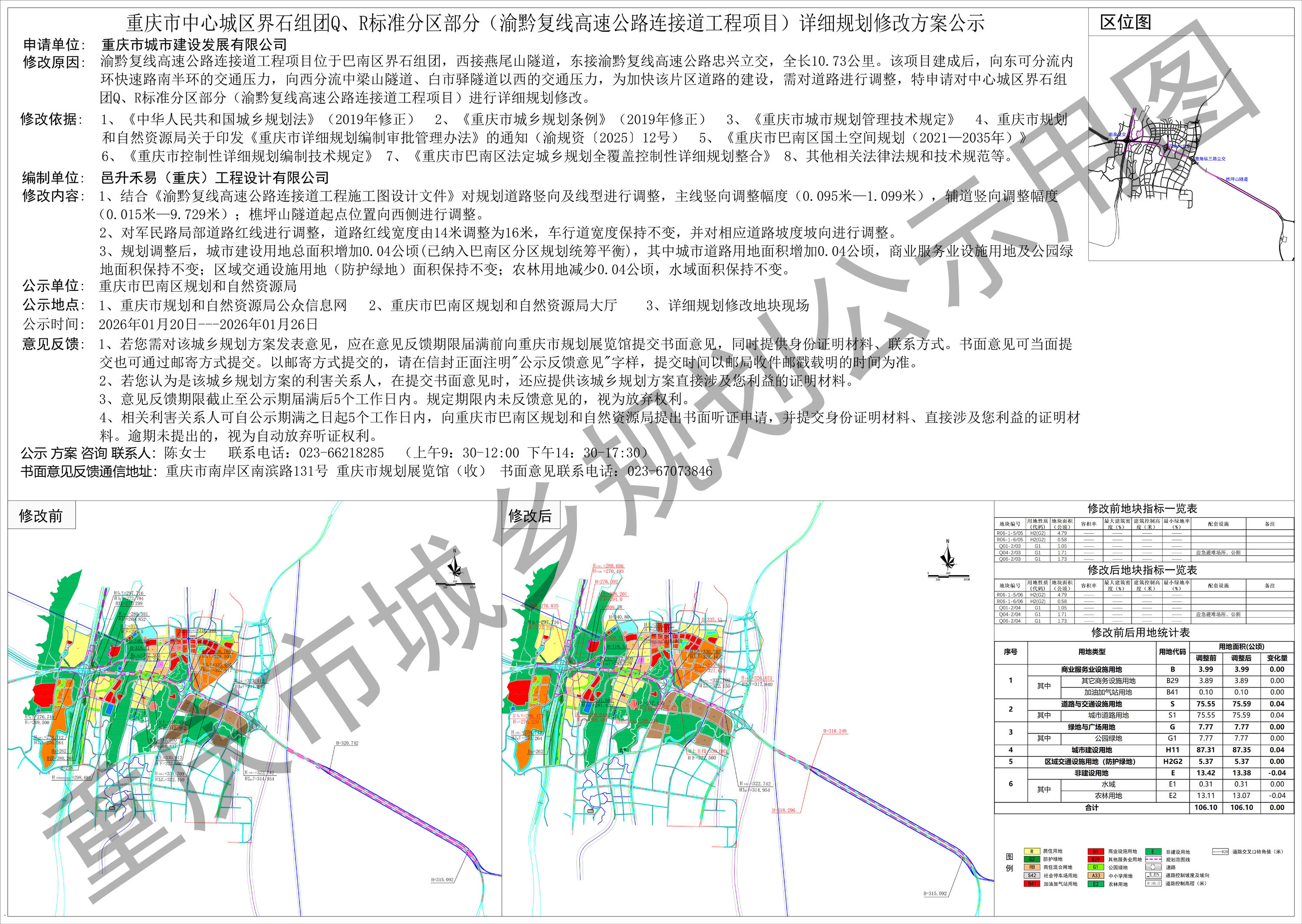 重庆市中心城区界石组团Q、R标准分区部分(渝黔复线高速公路连接道工程项目)详细规划修改方案公示