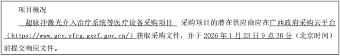 项目名称:超脉冲激光介入治疗系统等医疗设备采购项目