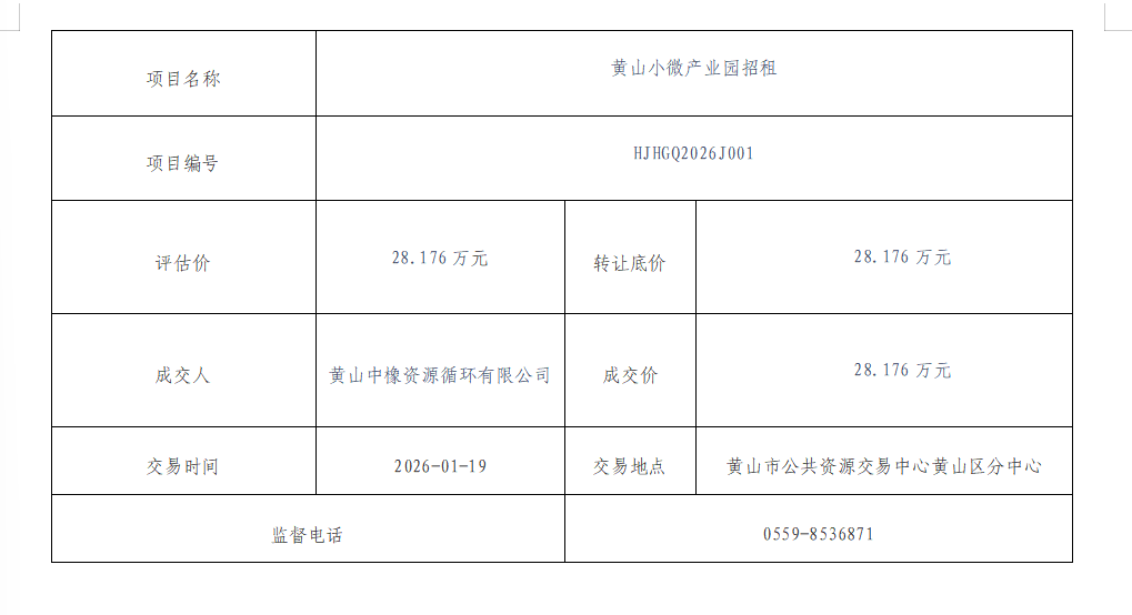 【中标公示】黄山小微产业园招租【黄山区】【公告中】