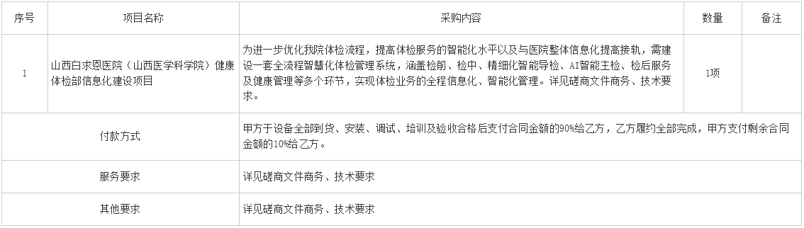 项目名称:山西白求恩医院(山西医学科学院)健康体检部信息化建设项目