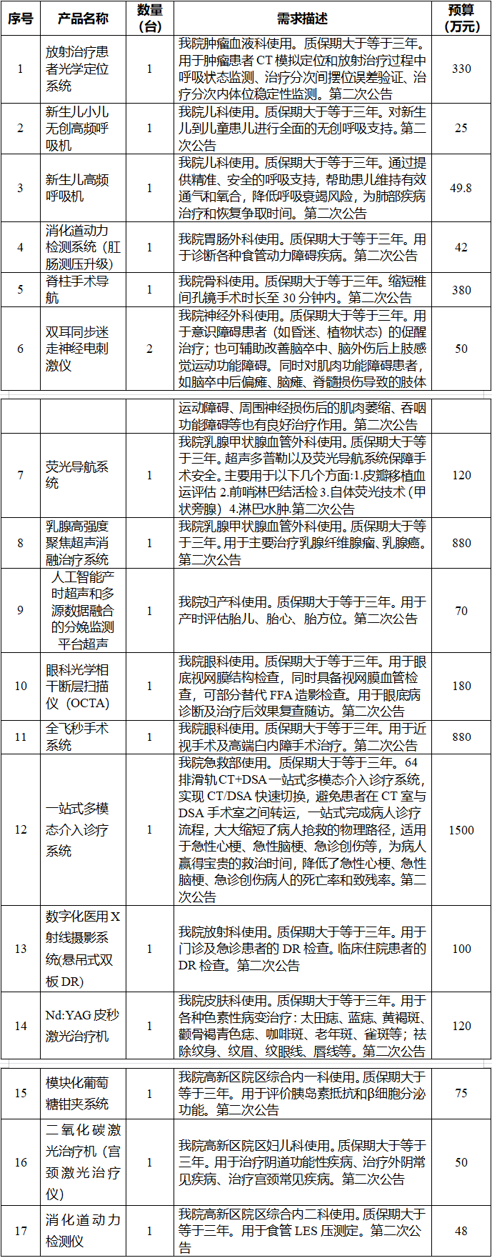 重庆大学附属涪陵医院医疗设备需求公告****年医疗设备采购需求公告***号