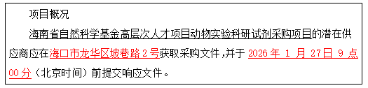 *.项目名称:海南省自然科学基金高层次人才项目动物实验科研试剂采购项目;