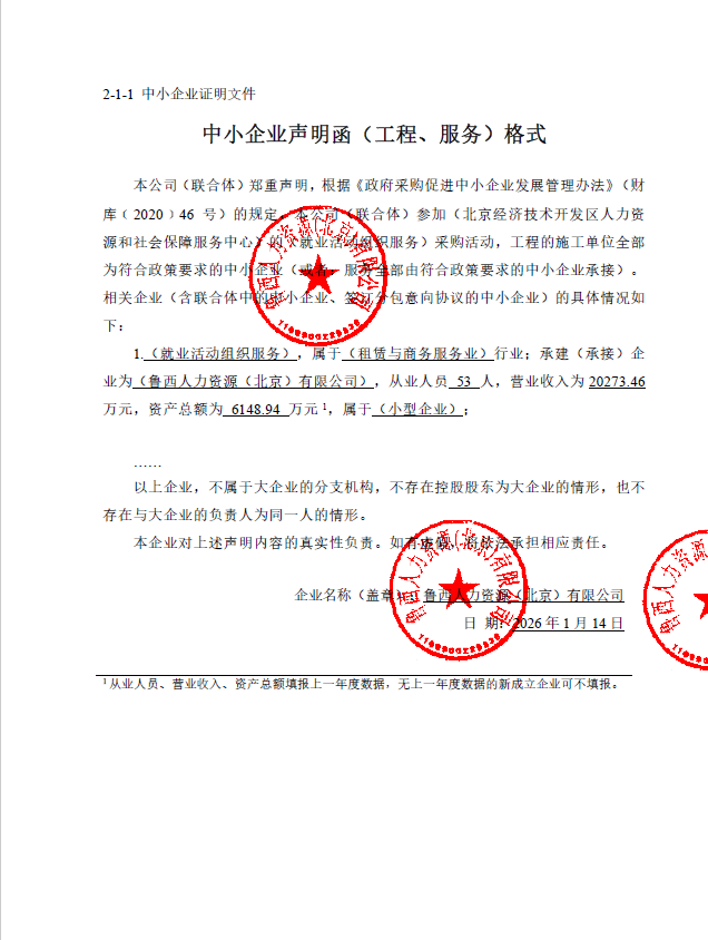 中标成交供应商名称:鲁西人力资源(北京)有限公司