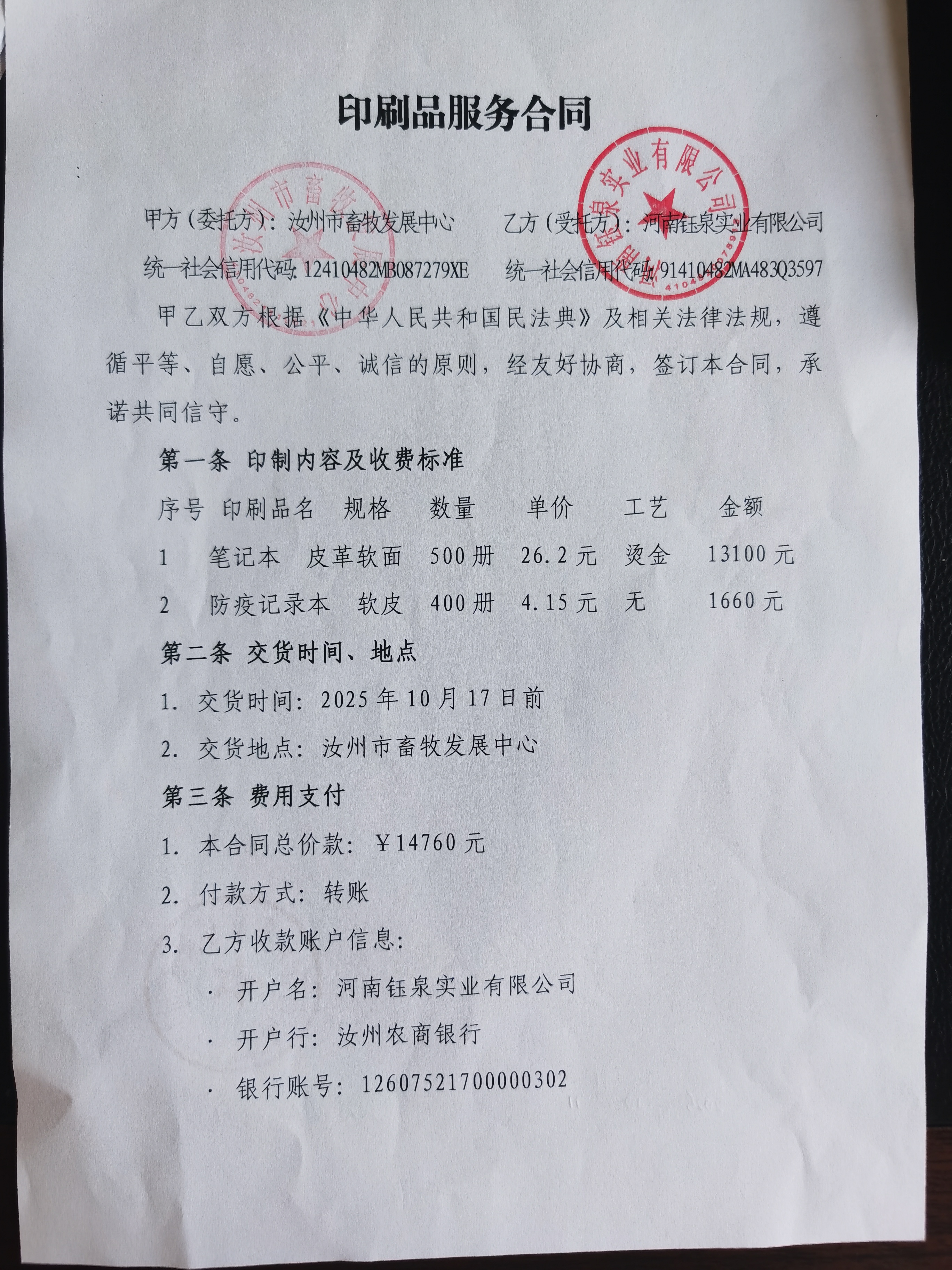 | 一、合同编号:汝财谈判采购*********** | ||||||||||||