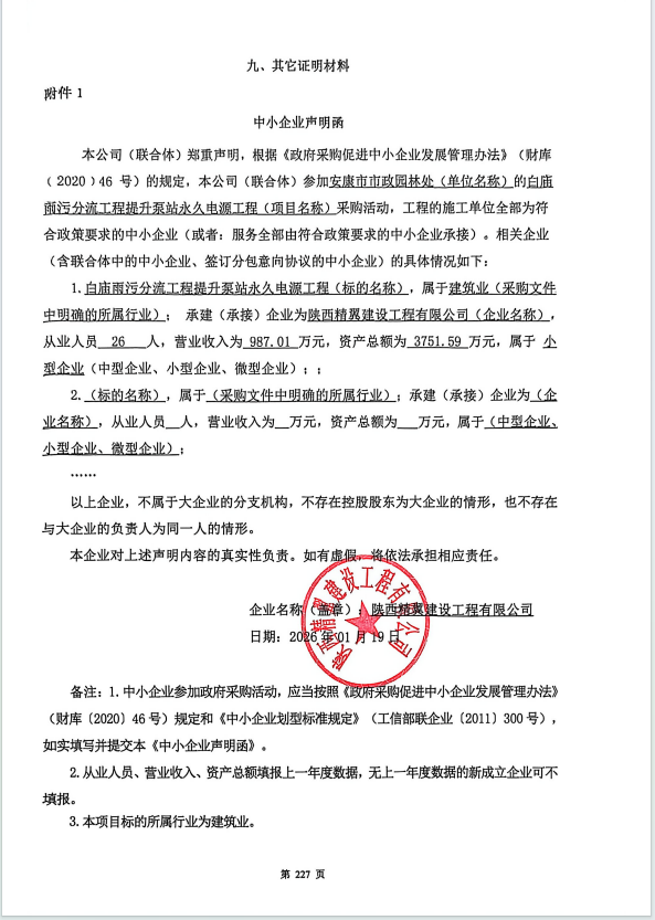 合同包*(白庙雨污分流工程提升泵站永久电源工程):