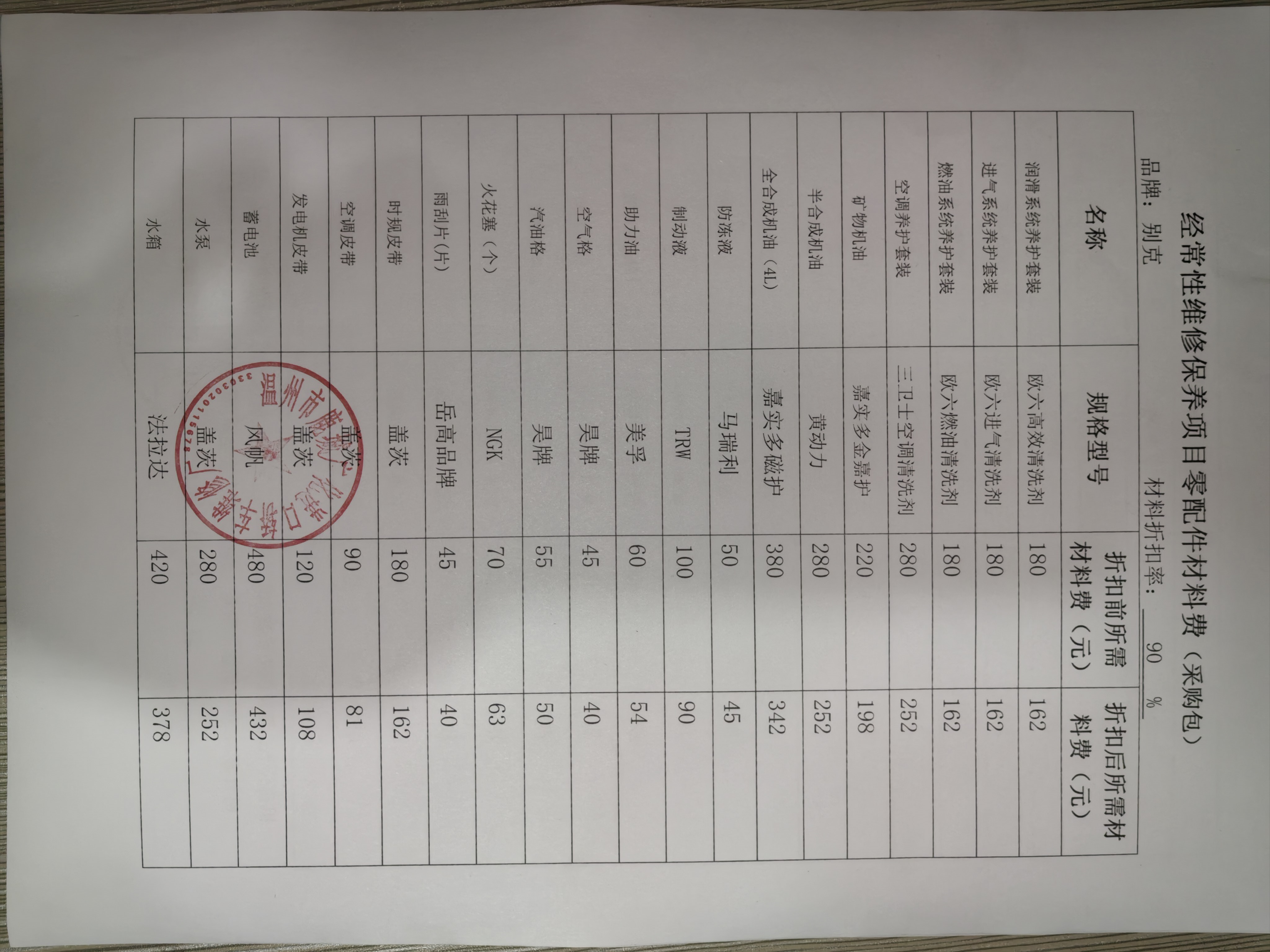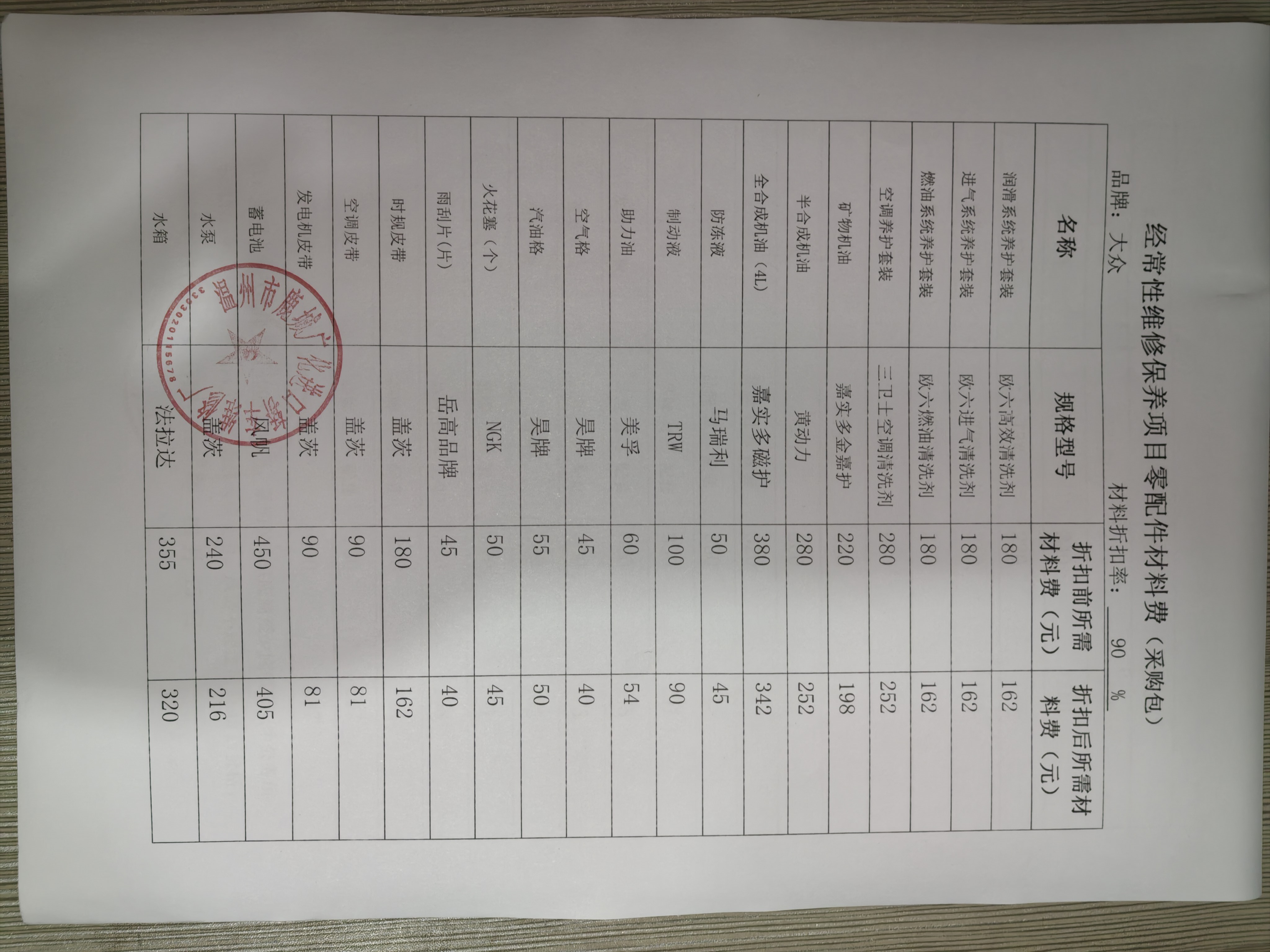 经常性维修保养项目零配件材料费:微信图片**********************.***