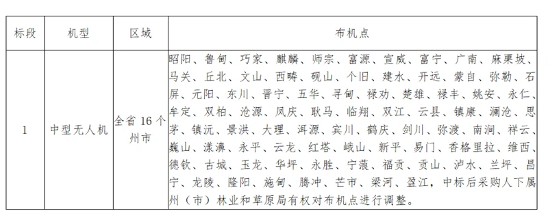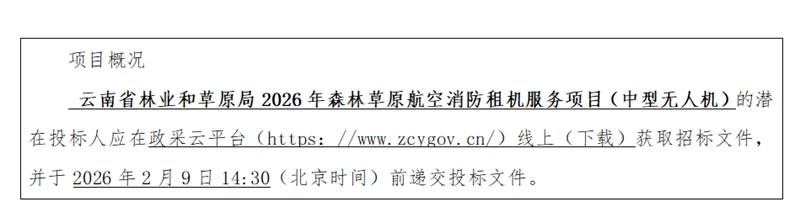 *.项目名称:云南省林业和草原局****年森林草原航空消防租机服务项目(中型无人机);