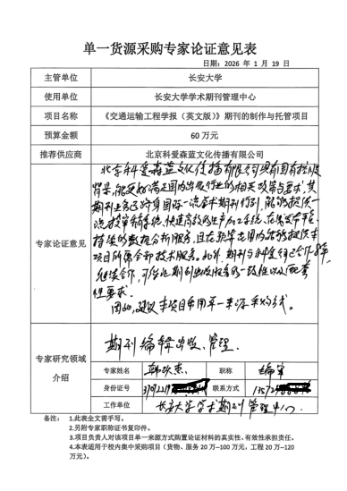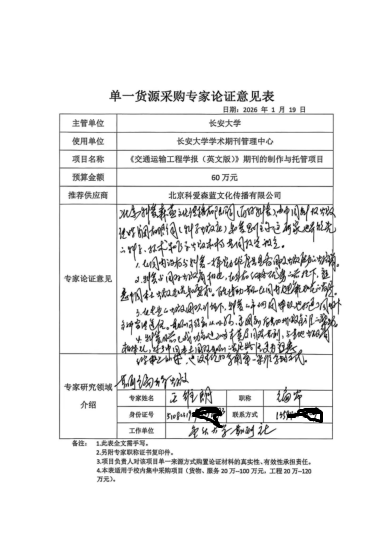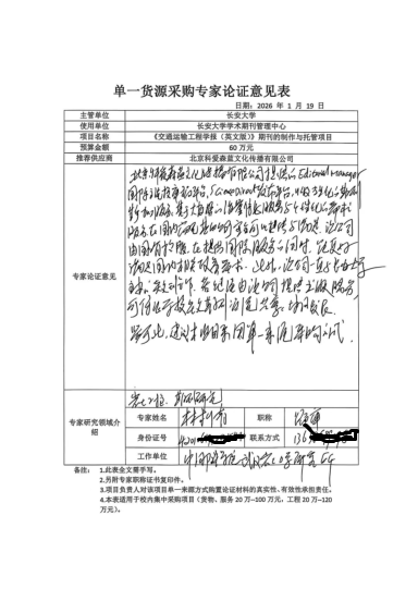 《交通运输工程学报(英文版)》期刊制作与托管项目单一货源采购公示
