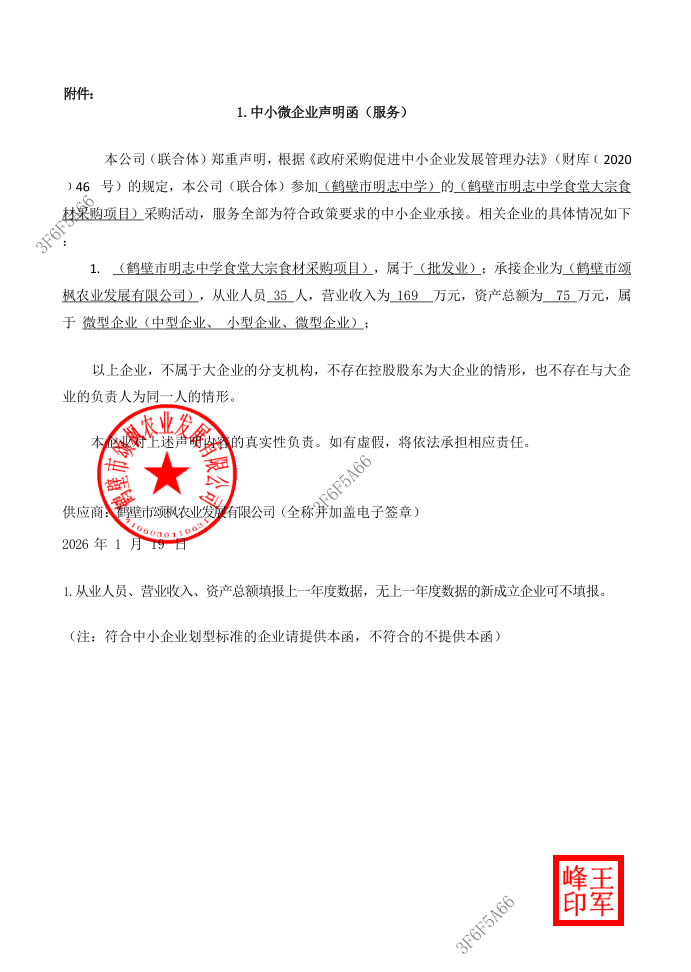 鹤壁市明志中学食堂大宗食材采购项目*成交公告