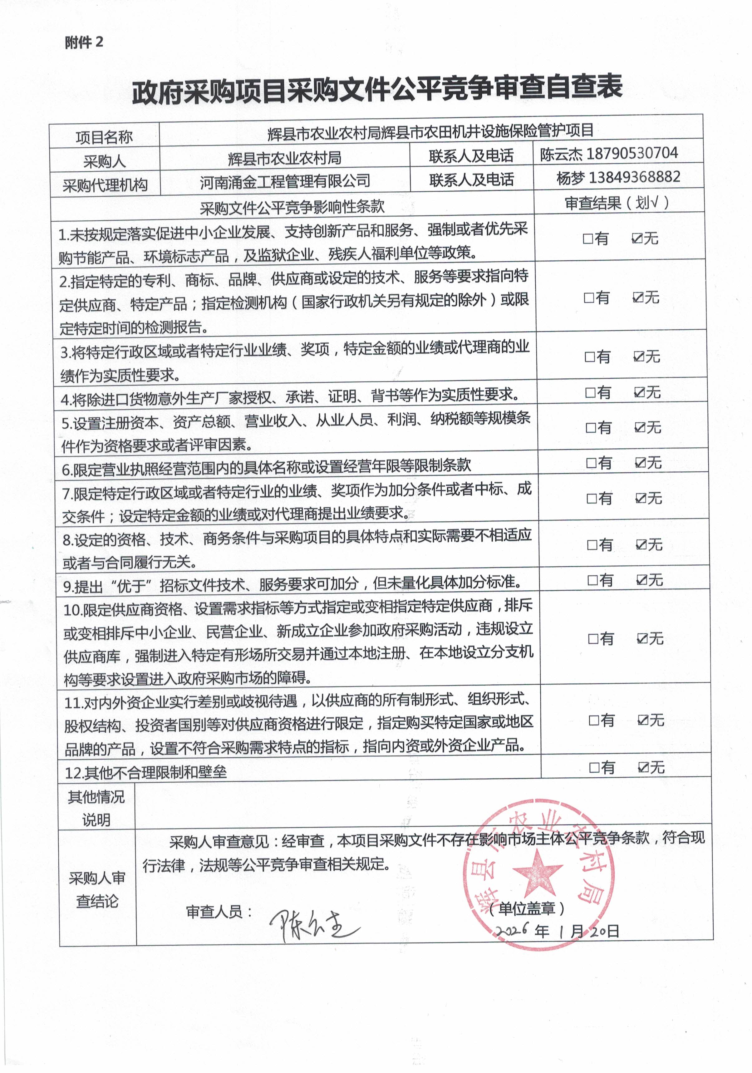 | *、项目名称:辉县市农业农村局辉县市农田机井设施保险管护项目 | |||||||||||