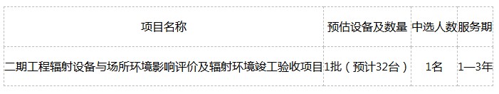(一)项目名称:二期工程辐射设备与场所环境影响评价及辐射环境竣工验收项目
