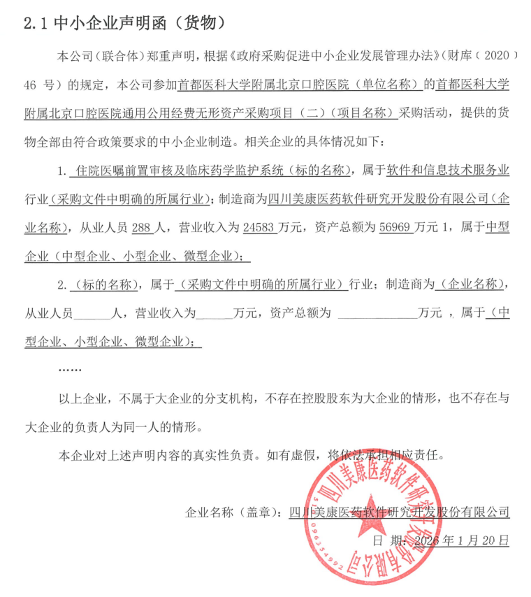 | 四川美康医药软件研究开发股份有限公司 | ****药师审方干预系统**.* | / | * | **.**万元 | **.**万元 | 详见招标文件 |