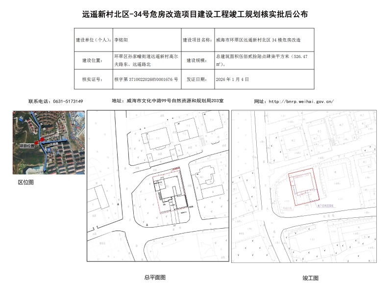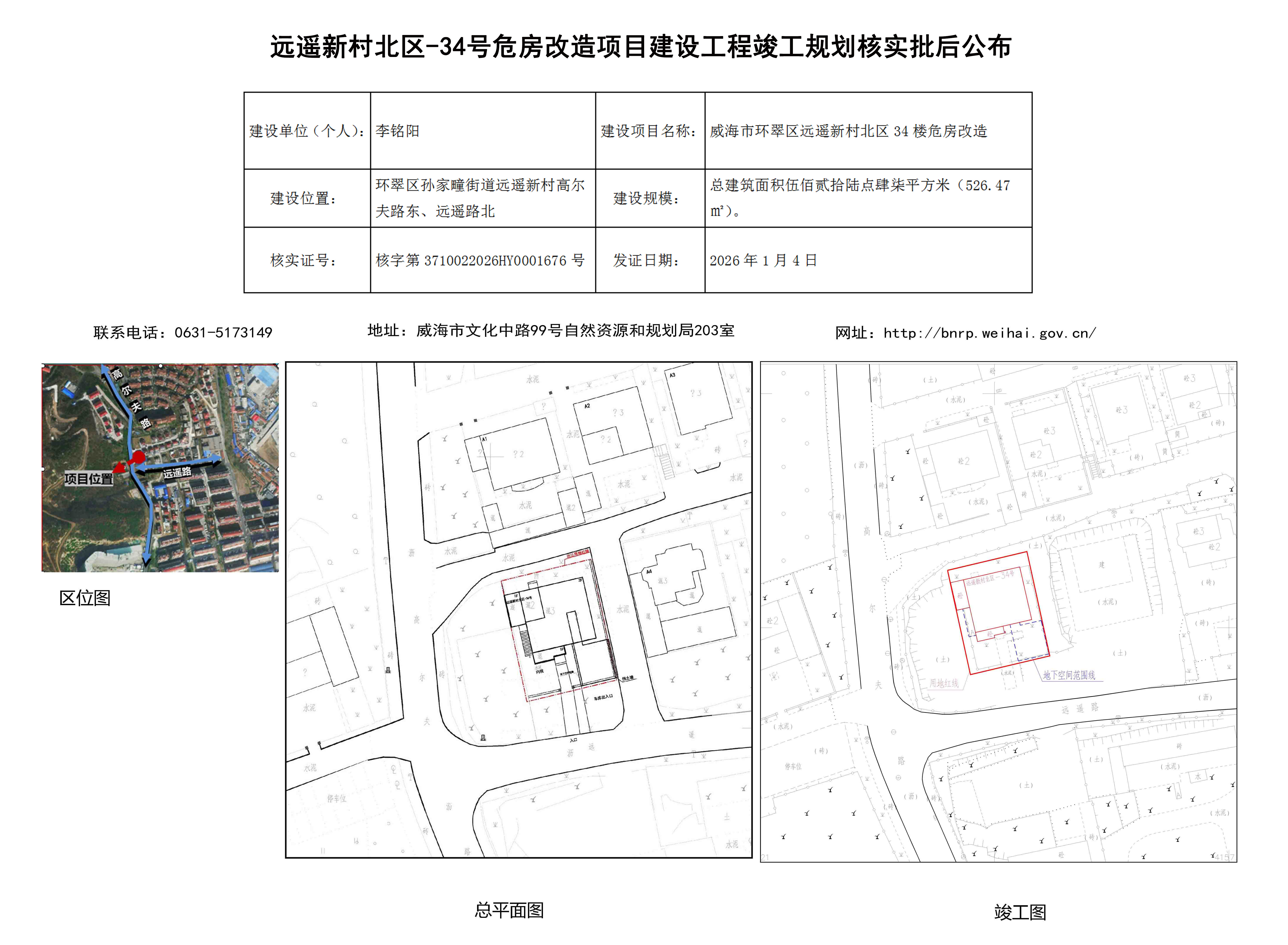 远遥新村北区-34号危房改造项目建设工程竣工规划核实批后公布