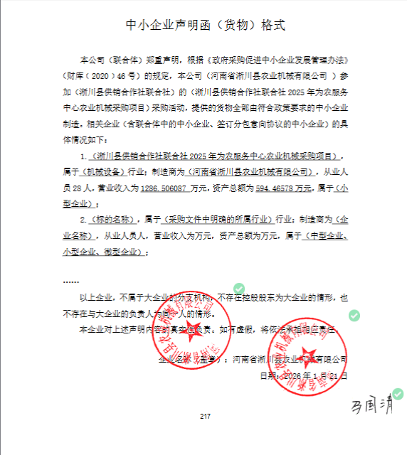 淅川县供销合作社联合社2025年为农服务中心农业机械采购项目-中标公告